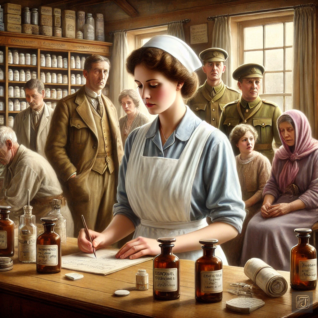 During the war, her husband was deployed to the front lines, while Agatha worked as a pharmacy assistant at a local hospital, waiting anxiously for Archie’s return.