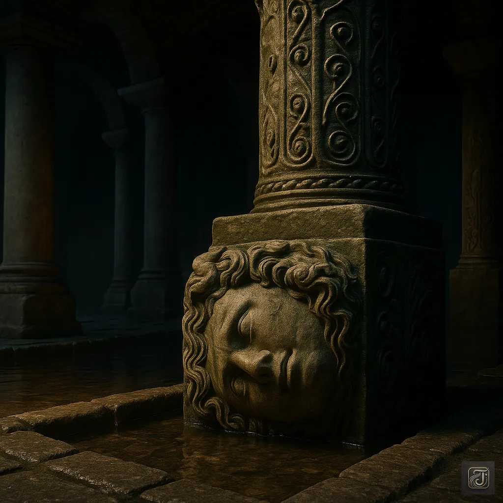 One of the most famous features is the Medusa head sculptures, placed upside down or sideways. Their presence adds an extra layer of mystery to this place.