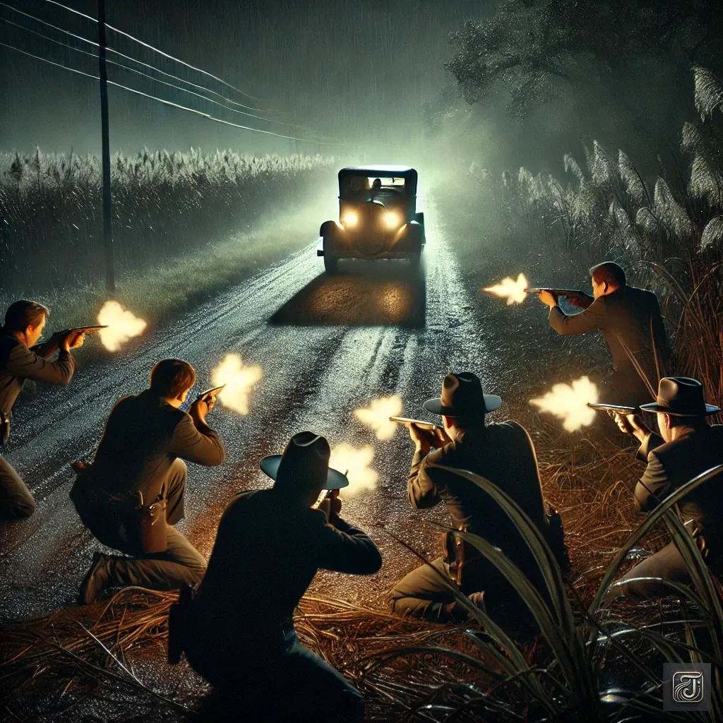 As the gunfire ended and Hammer saw Bonnie and Clyde’s cold bodies lying in the car, he quietly lowered his gun.
