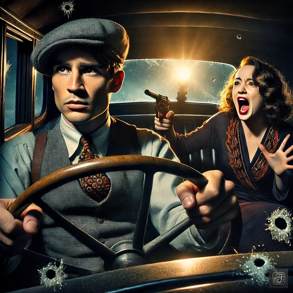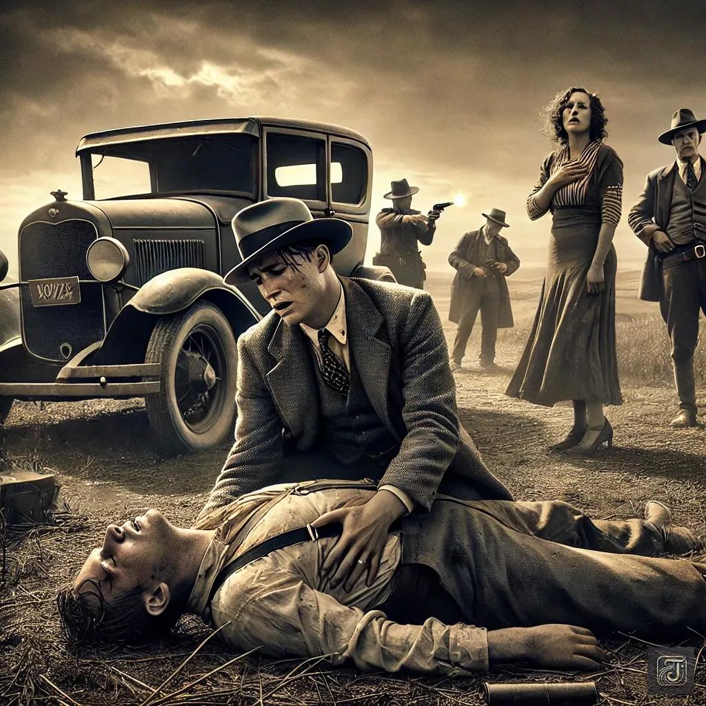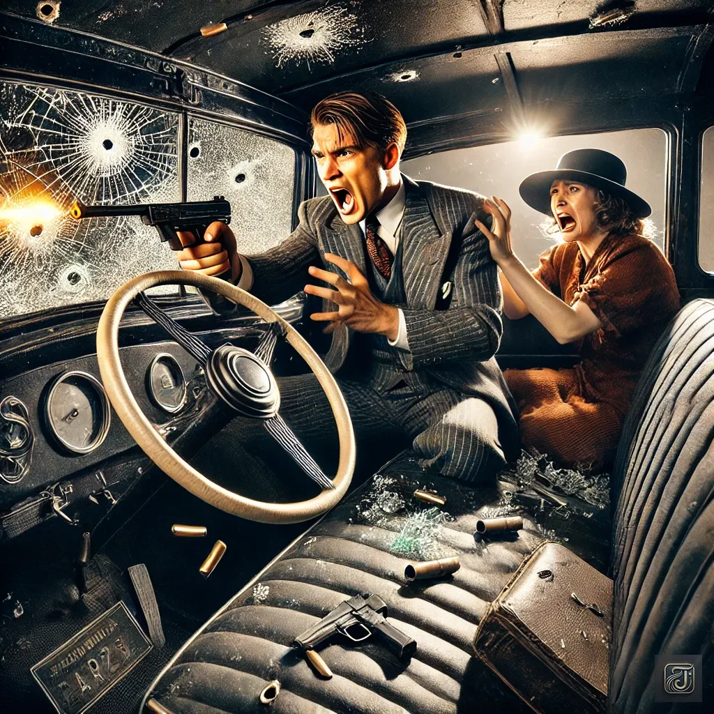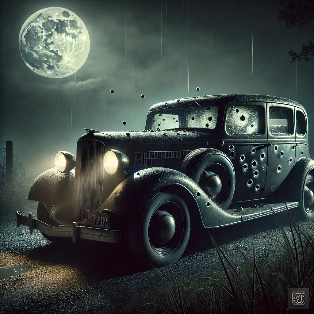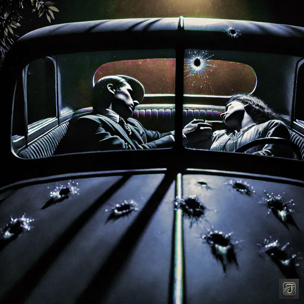 Clyde tried to protect her, but the sudden gunfire hit, and the car became riddled with bullets, turning into a sieve.