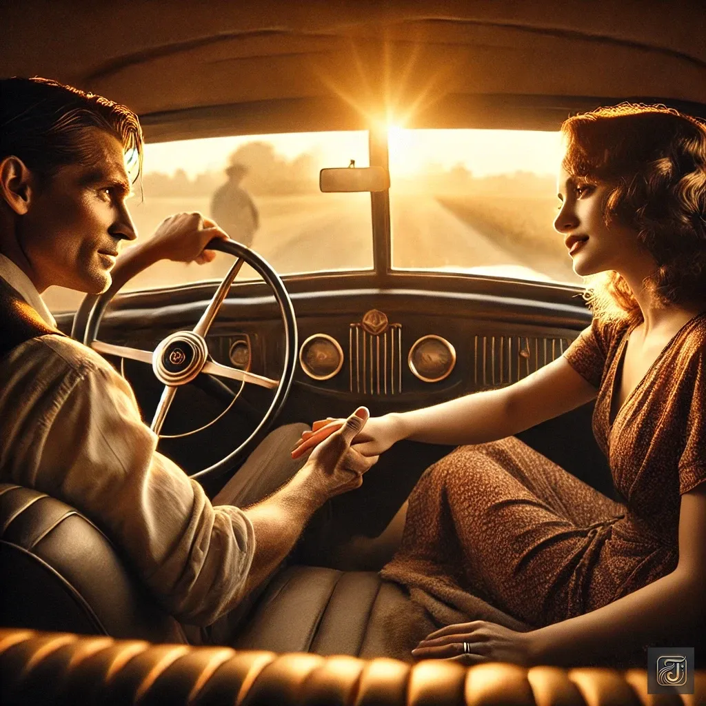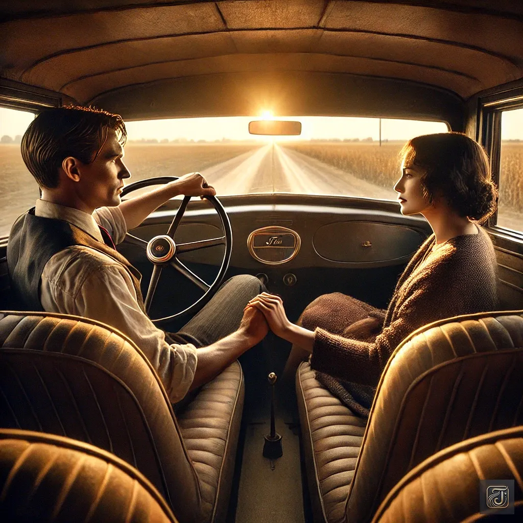 Inside the car, their hands remained firmly clasped until the end, with Bonnie’s fingertips gently resting against Clyde’s hand.