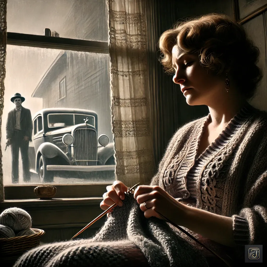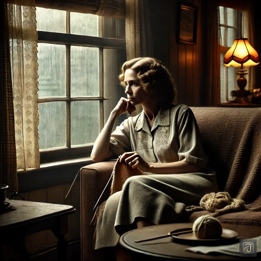 Bonnie’s mother sat by the window of their small house, her knitting in hand, gazing outside.