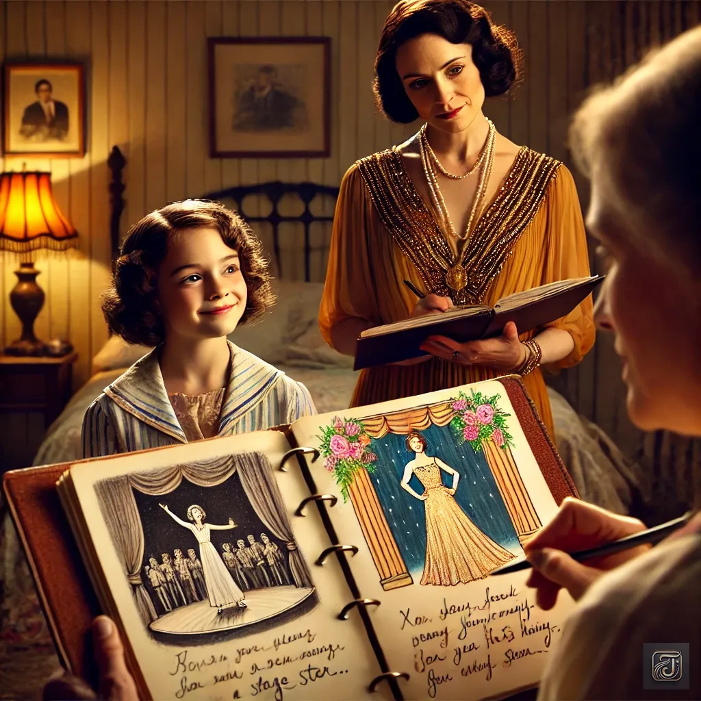 In the corner of her notebook, she had sketched herself in an elegant dress, radiating glamour.