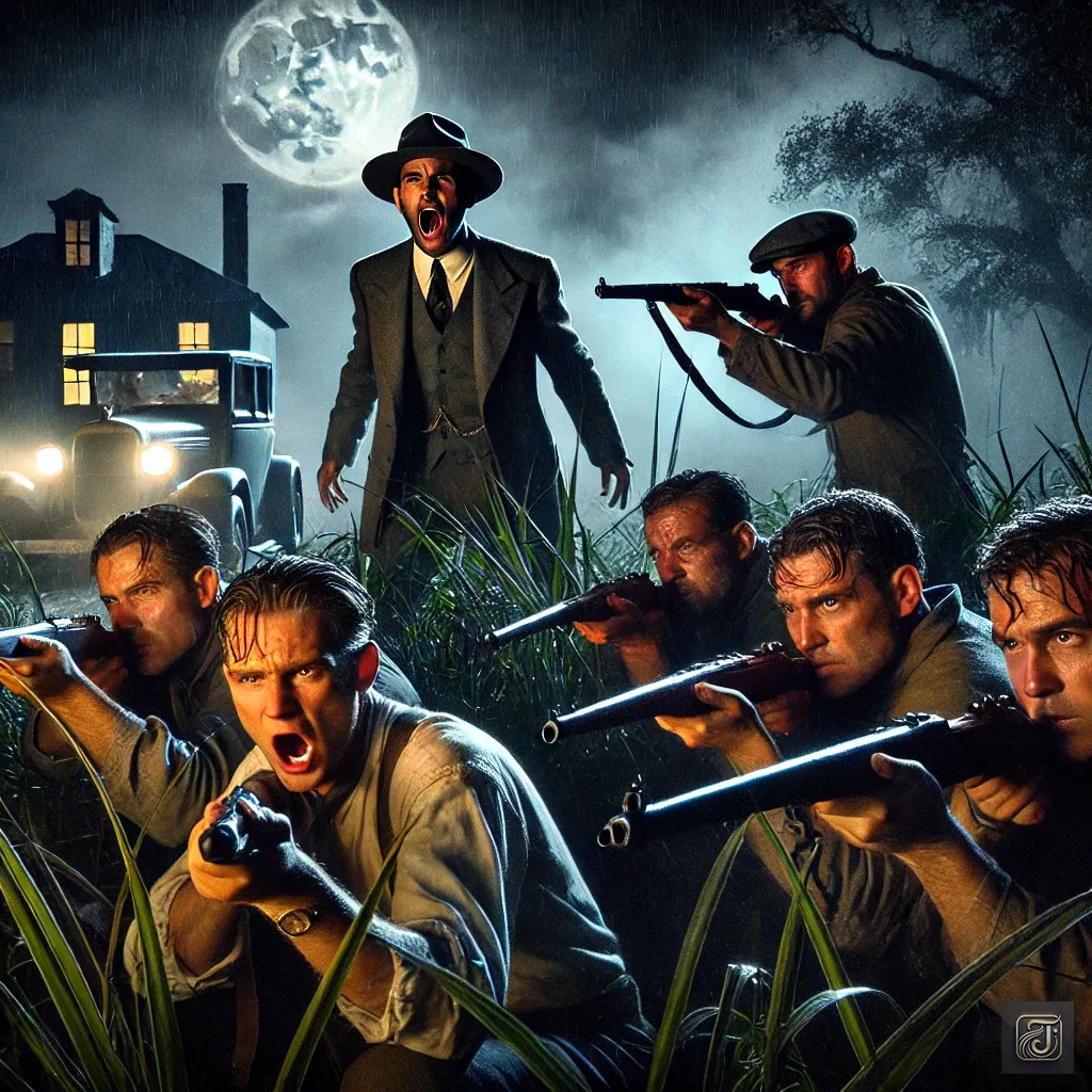 The moonlight filtered through the shadows of the bushes as they emerged, their trembling hands still clutching their weapons, overwhelmed by the heavy atmosphere.