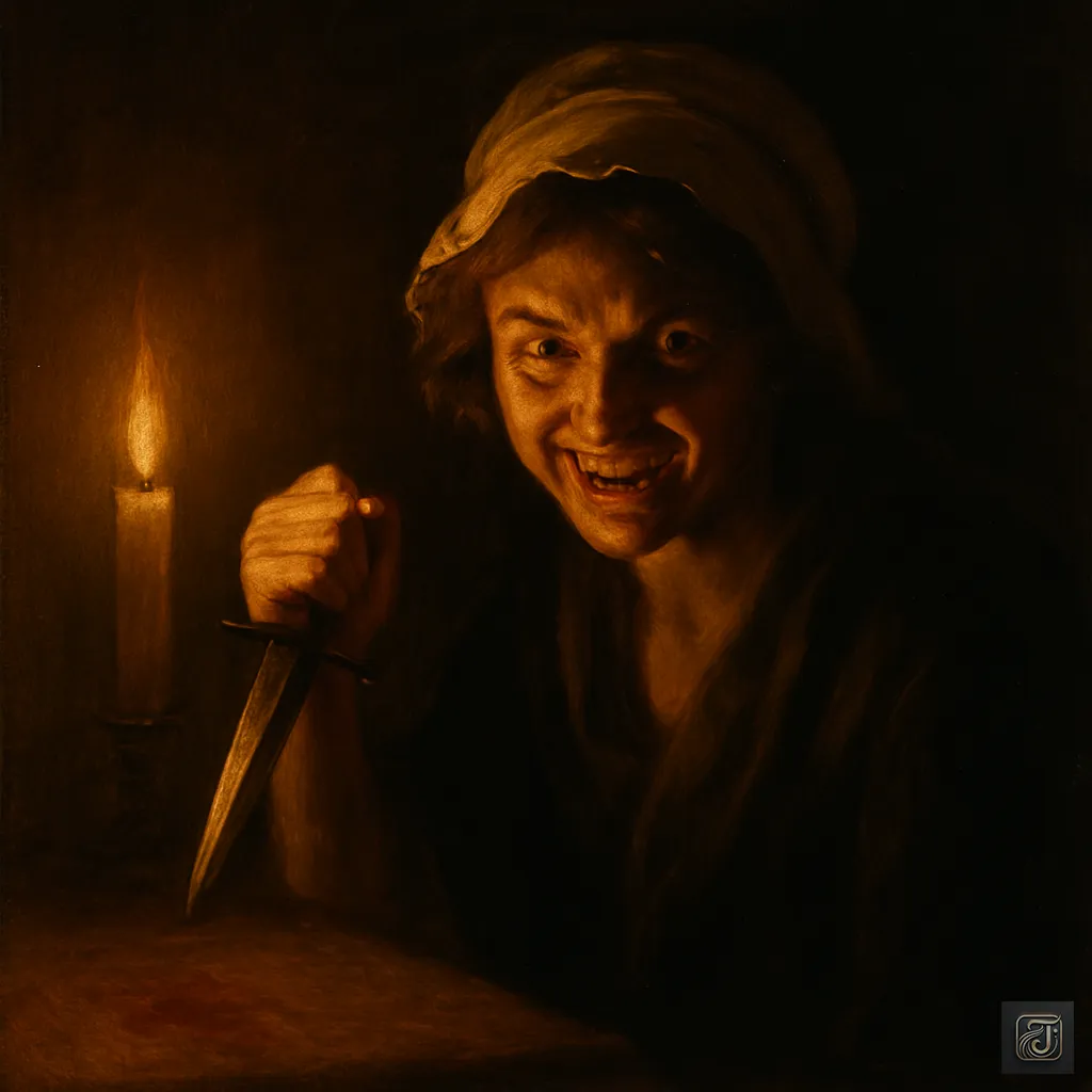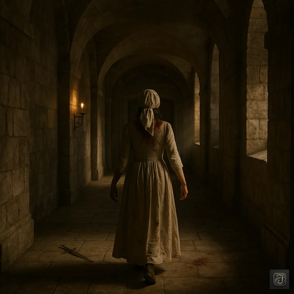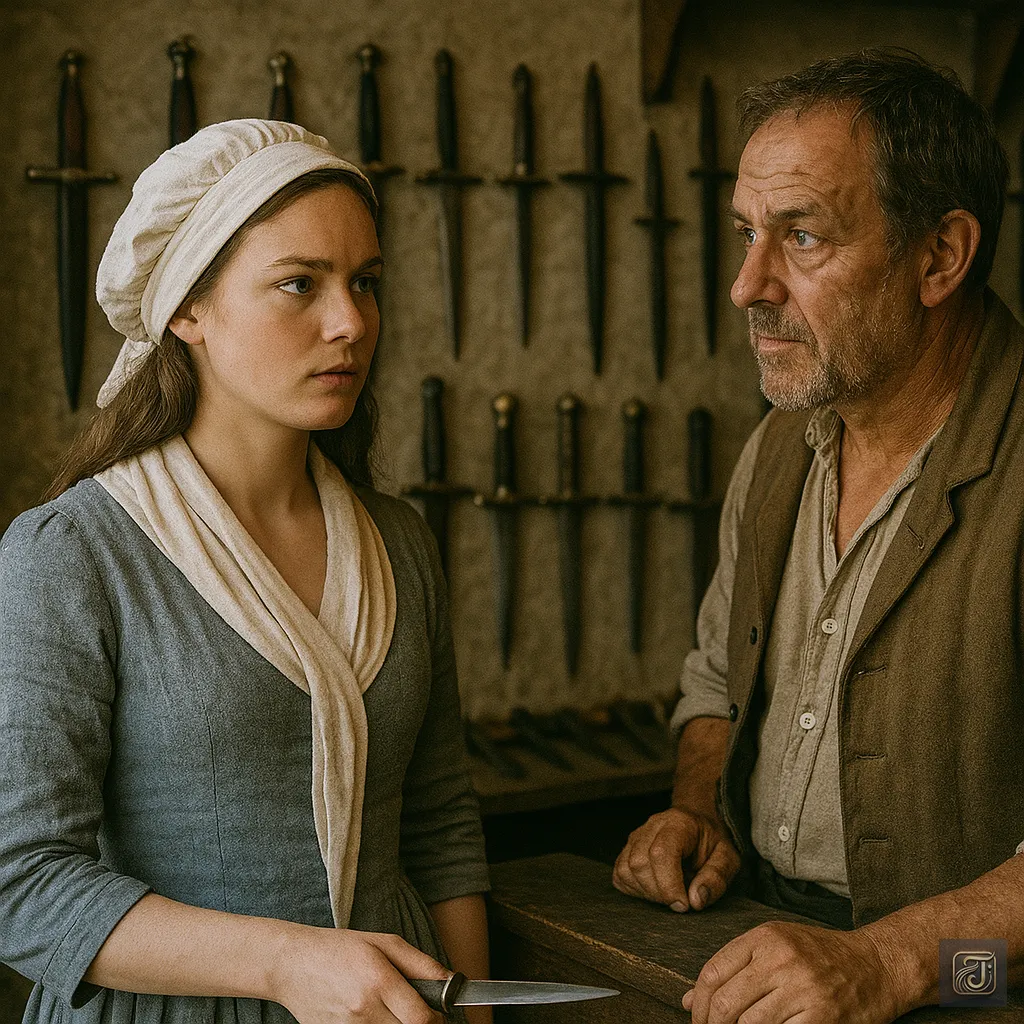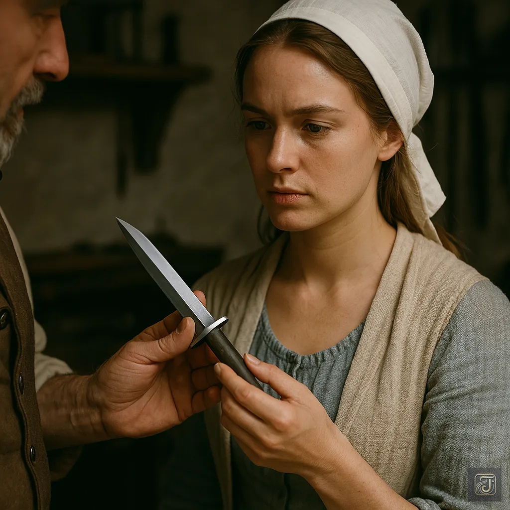 In her hand, she gripped a small dagger—its blade still untouched by blood, yet destined to play a role in one of the most dramatic moments in history.