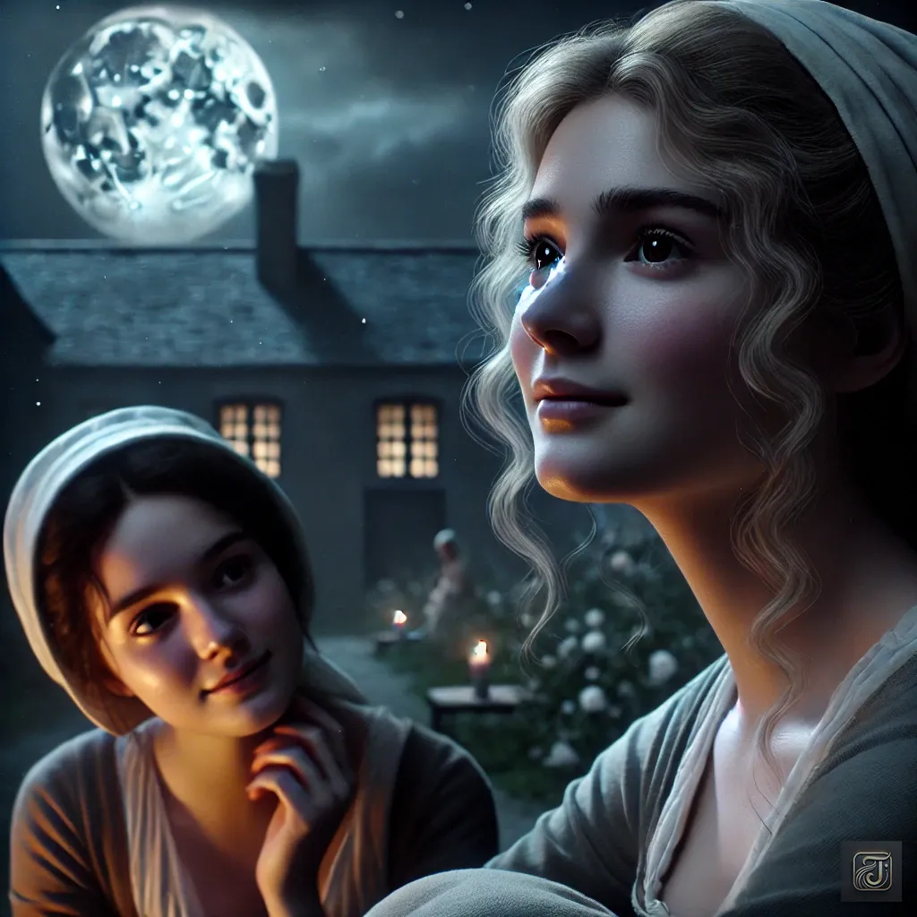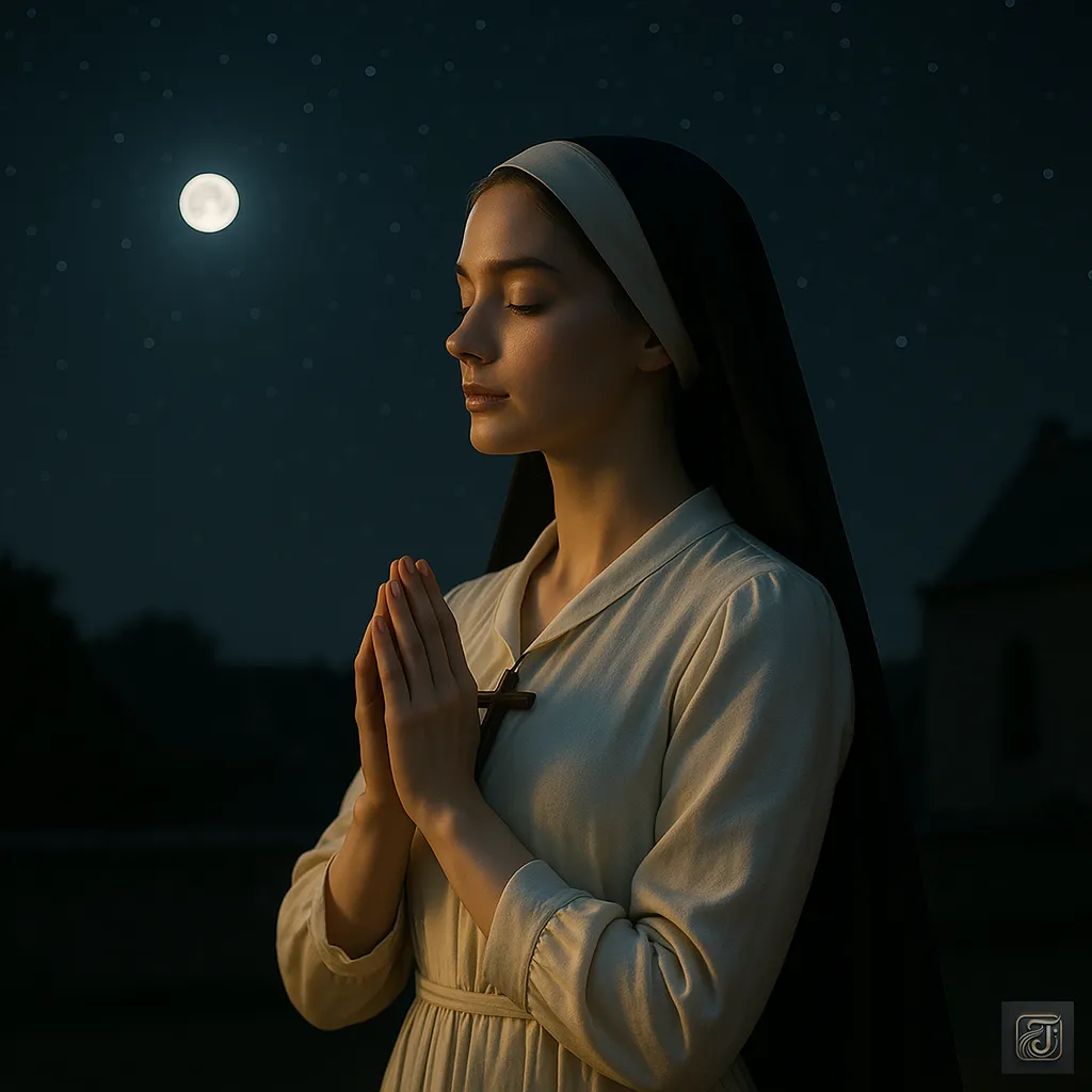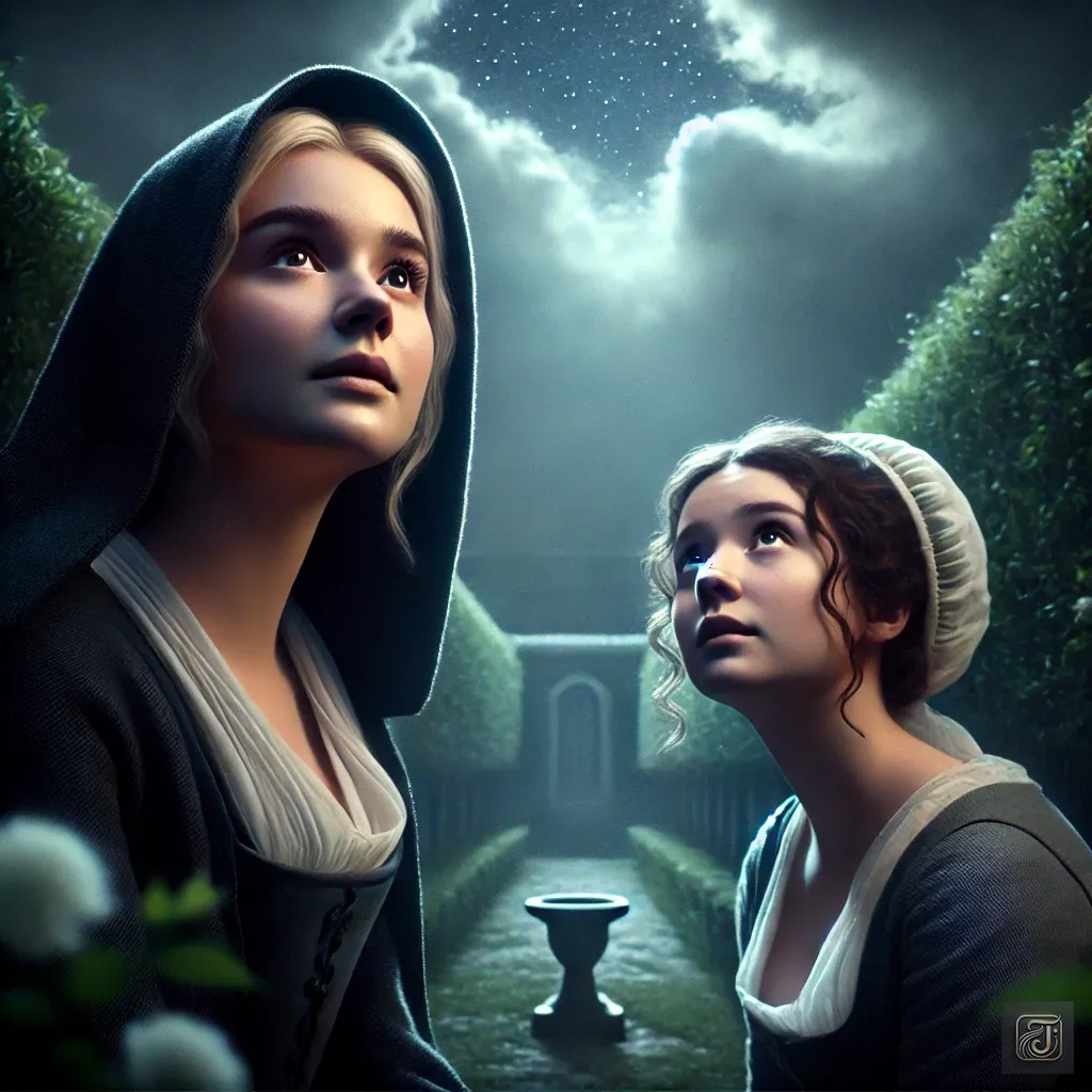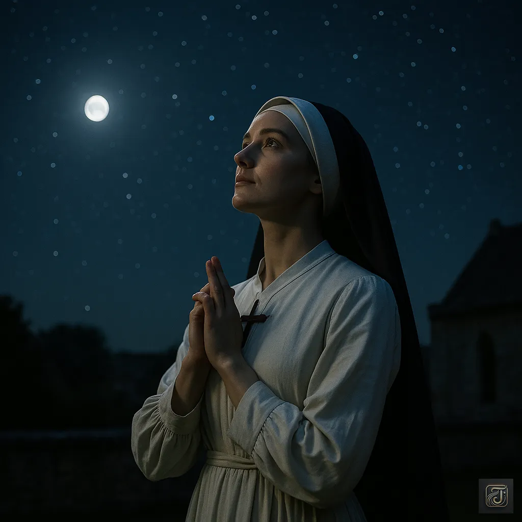 Moonlight cast a soft glow over the lush green grass, and the night breeze gently stirred the hems of their habits.