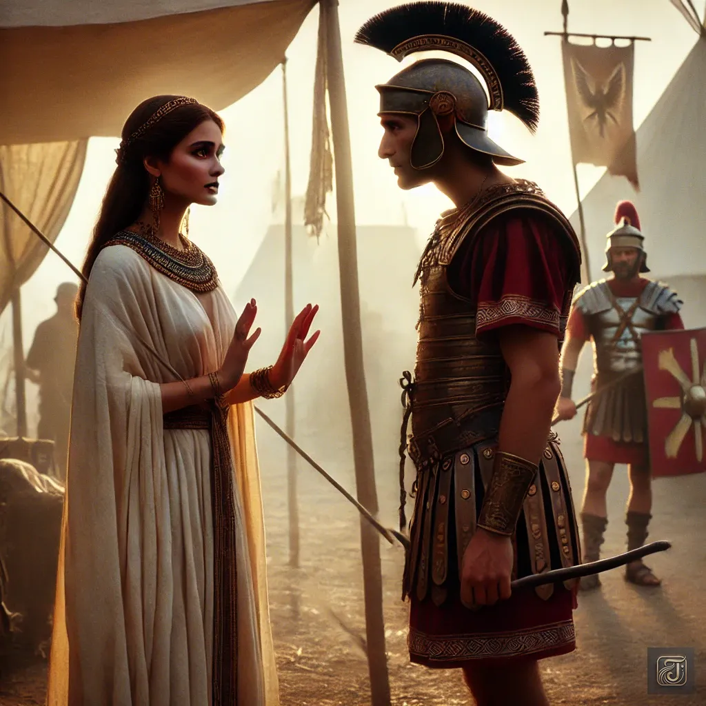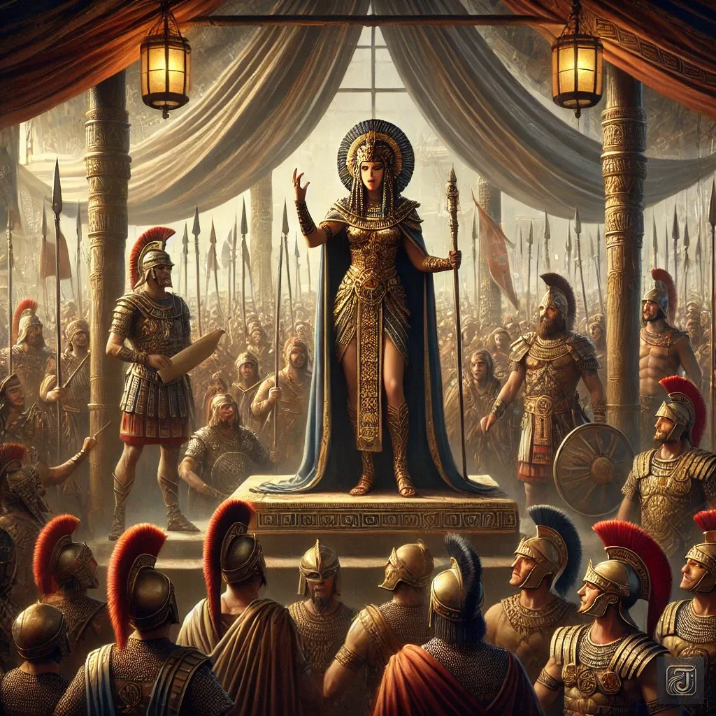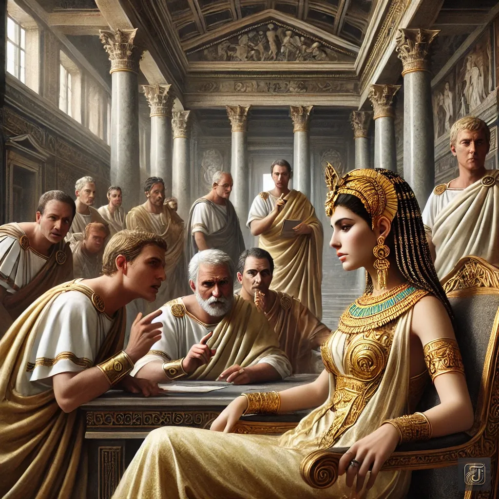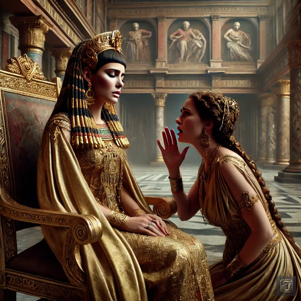 Taking a deep breath, Cleopatra responded with unwavering composure.