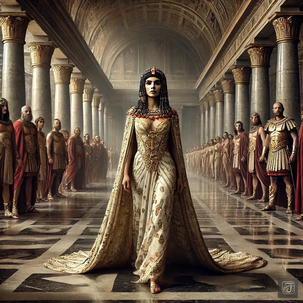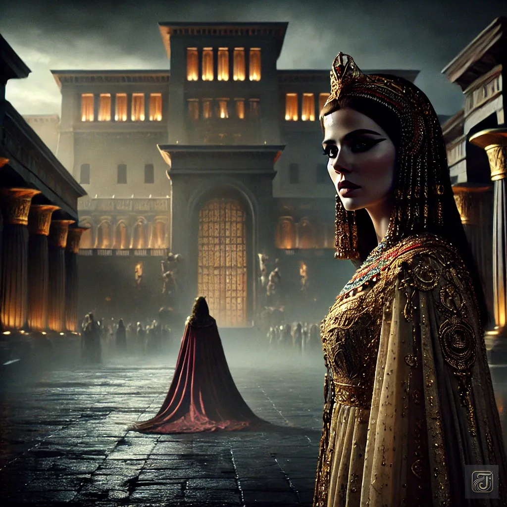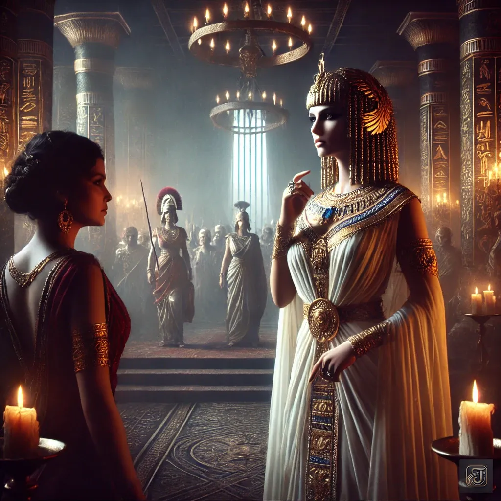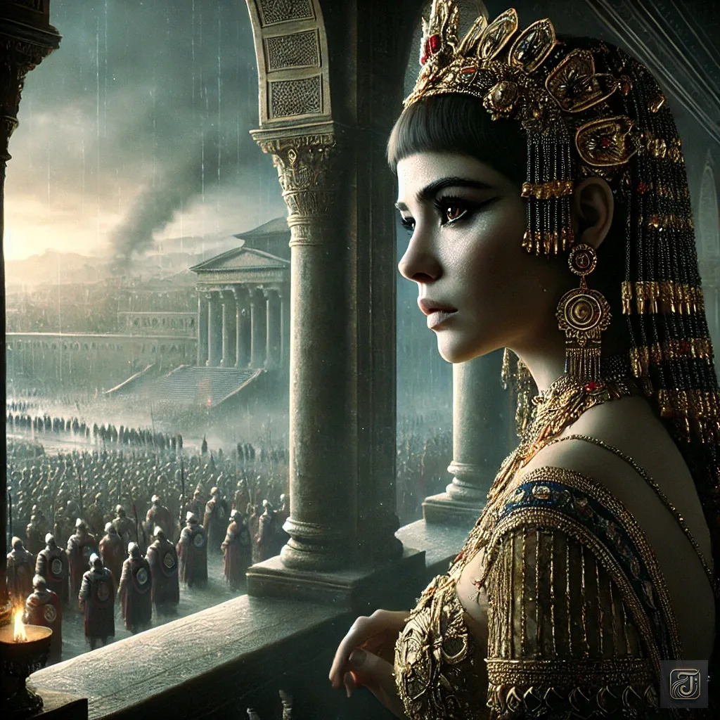 On the day of her exile, Cleopatra walked through the marble corridors of the palace, each step echoing with the weight of her fury.