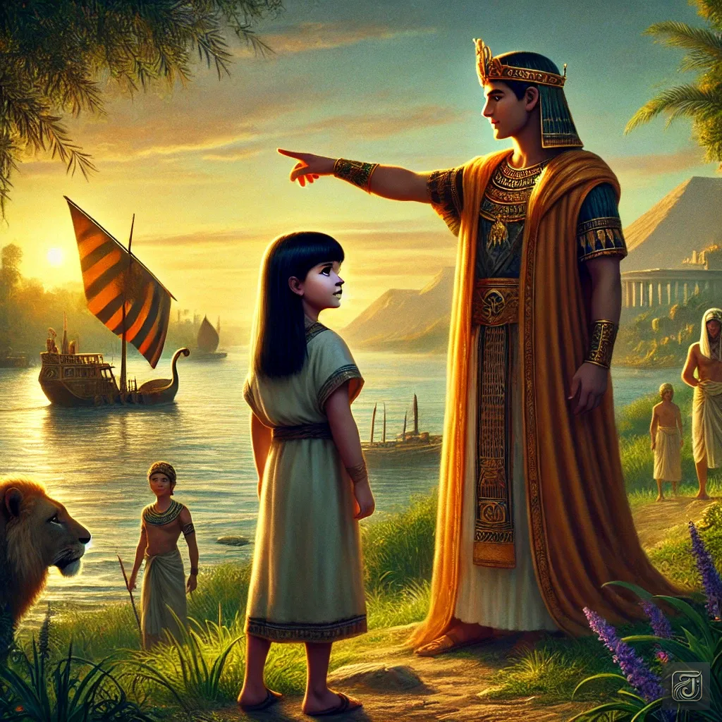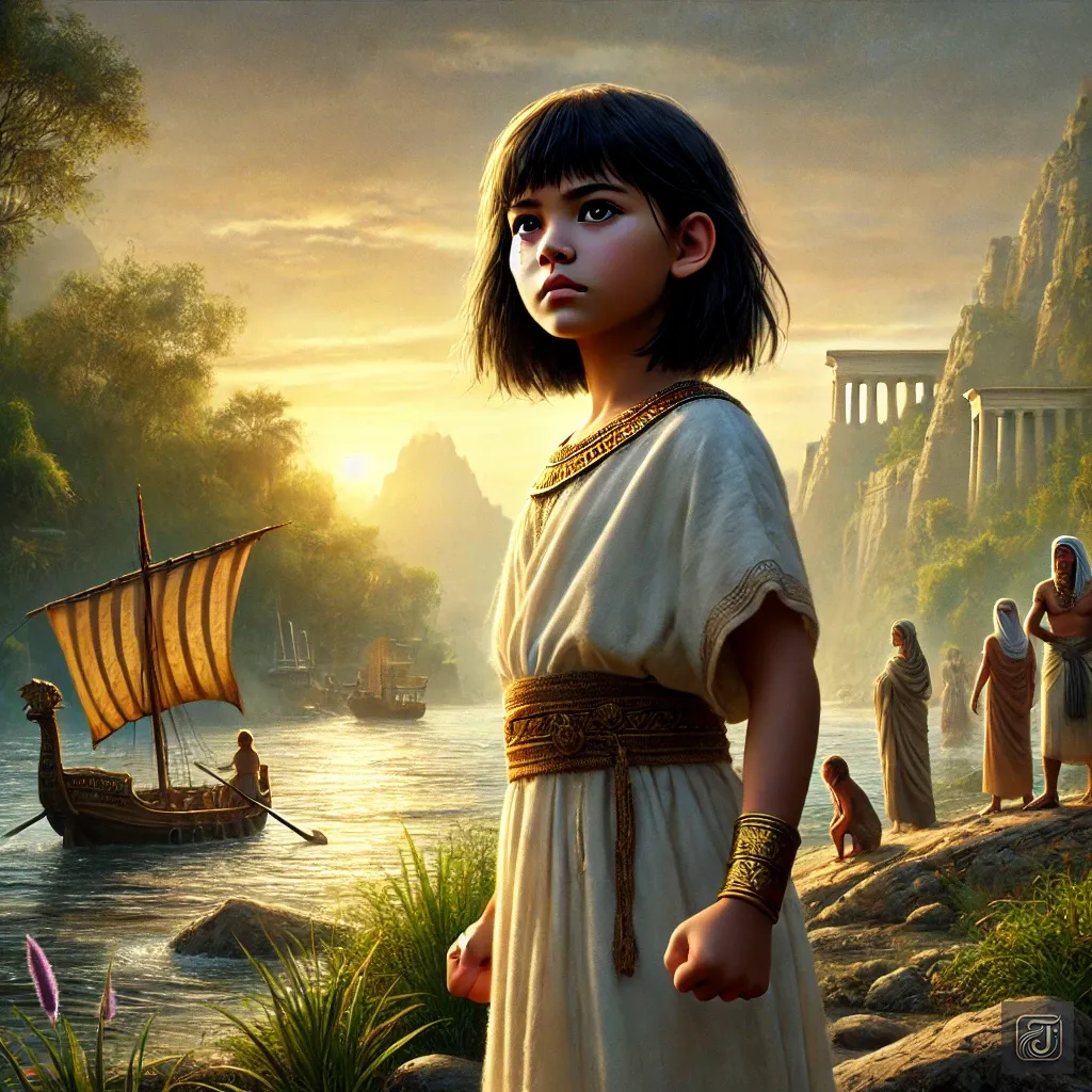 Young Cleopatra stood by the banks of the Nile, gazing up at her father, Ptolemy XII, as she made her solemn vow.