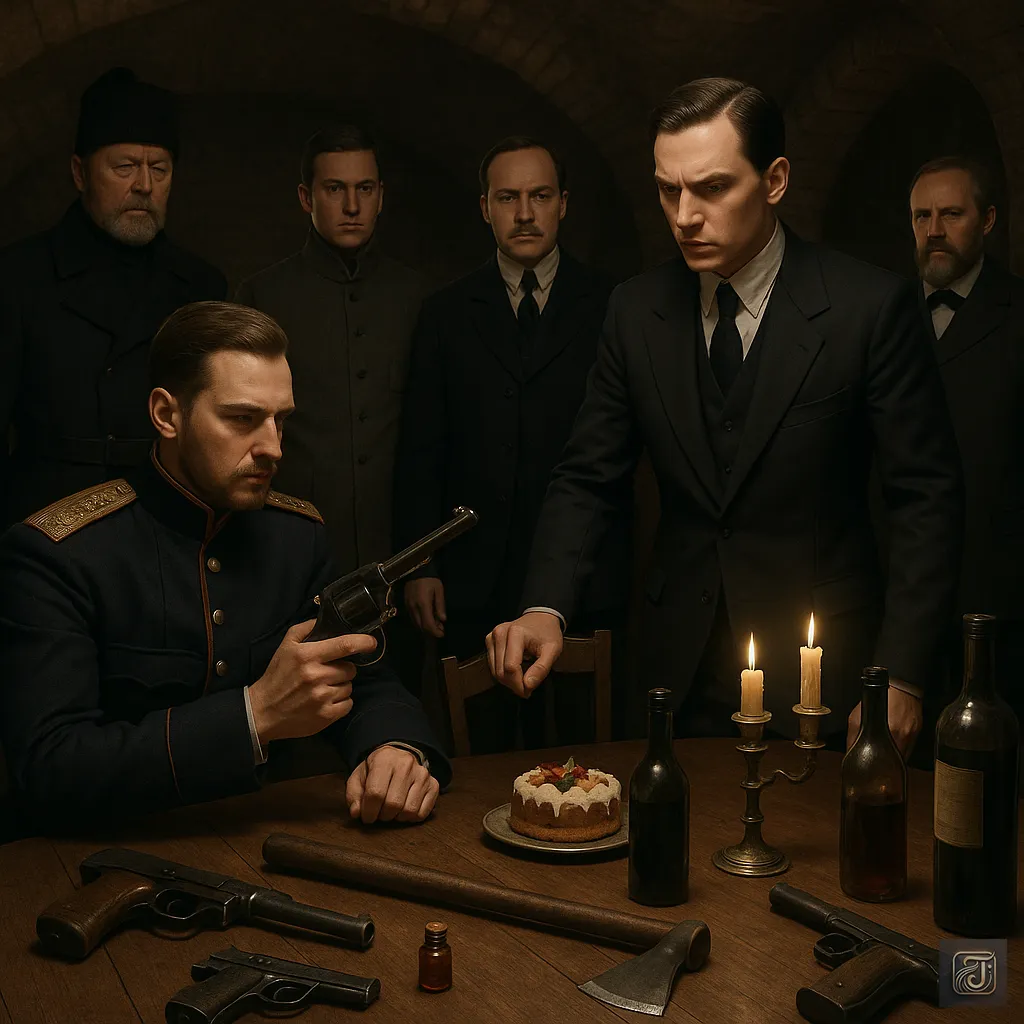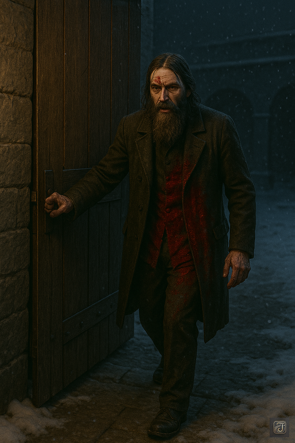 and in the end, he was poisoned, beaten, shot, and finally cast into the frozen river.