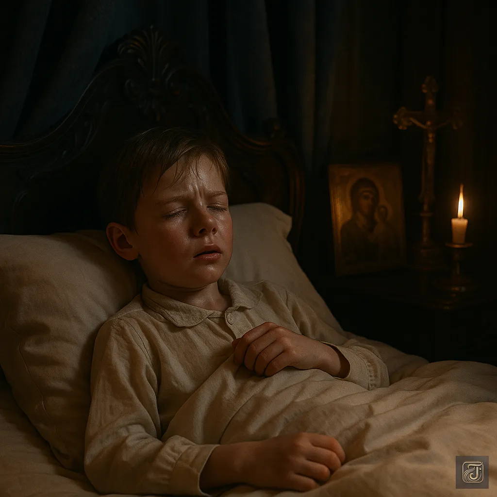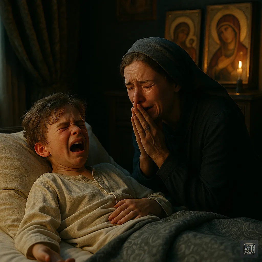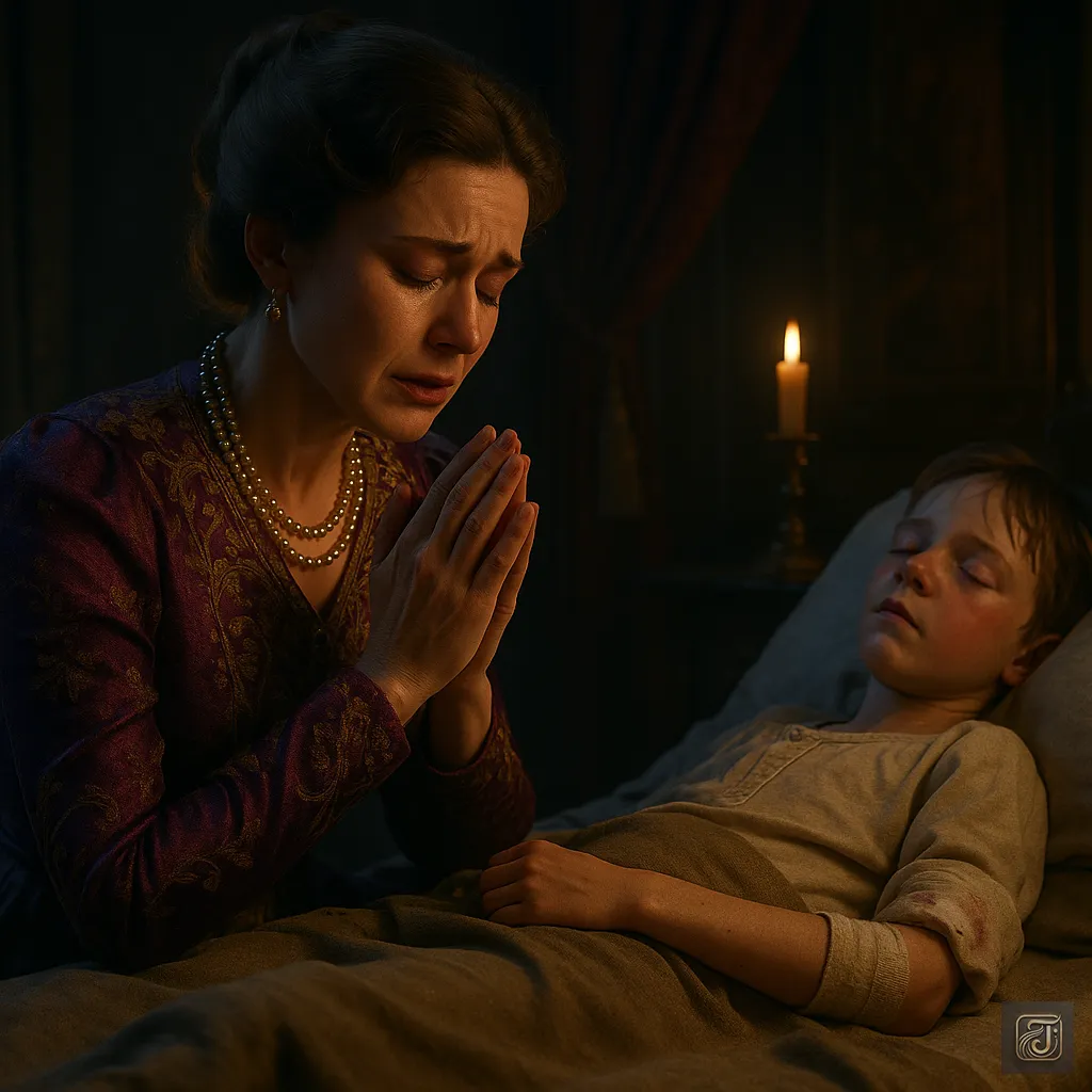 Lying weak in the chilled bedding after childbirth, his mother whispered softly.