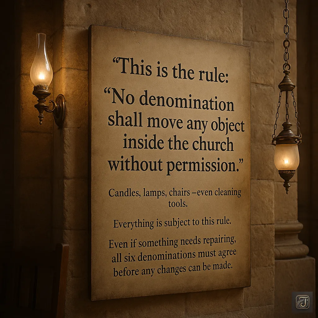 Even if something needs to be repaired, all six denominations must agree before anyone can touch it.