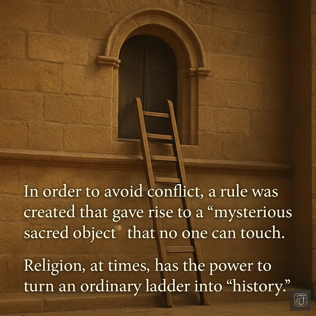 Religion, at times, has the power to turn an ordinary ladder into “history.”
