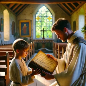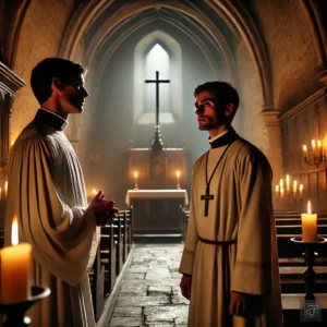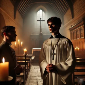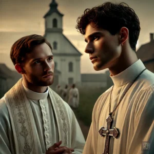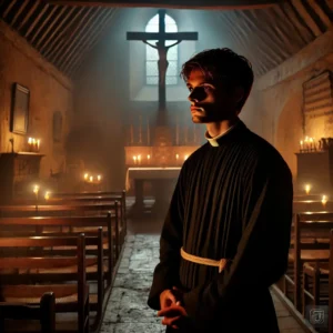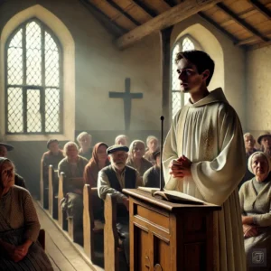 The villagers gathered with smiles on their faces, quietly listening to the words of the young priest.