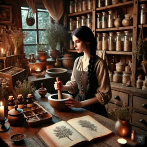 Her medicines and treatments were a source of reliance for the villagers, but her extensive knowledge often led to whispers of her being a “witch.”