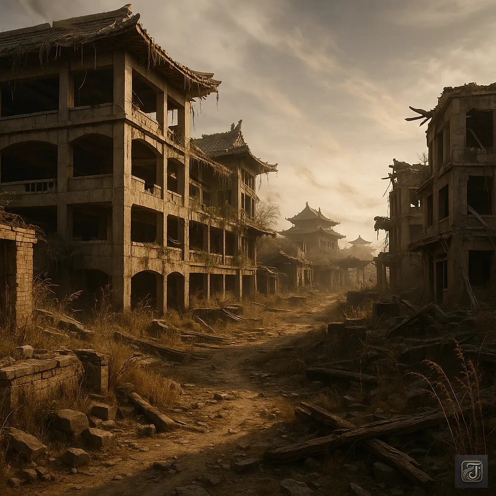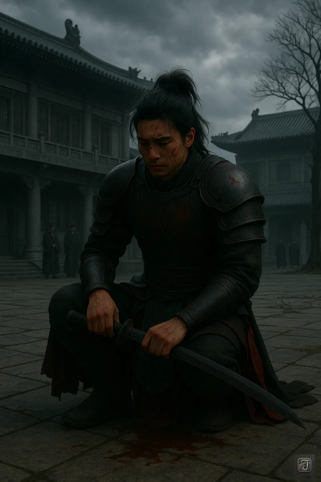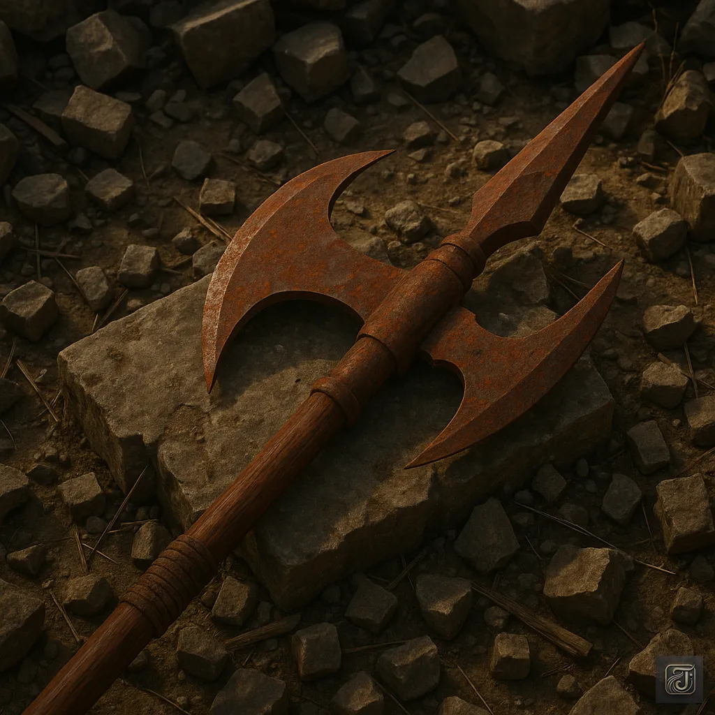 Among the rubble, a broken Fangtian Huaji lay, its blade stained red with rust.