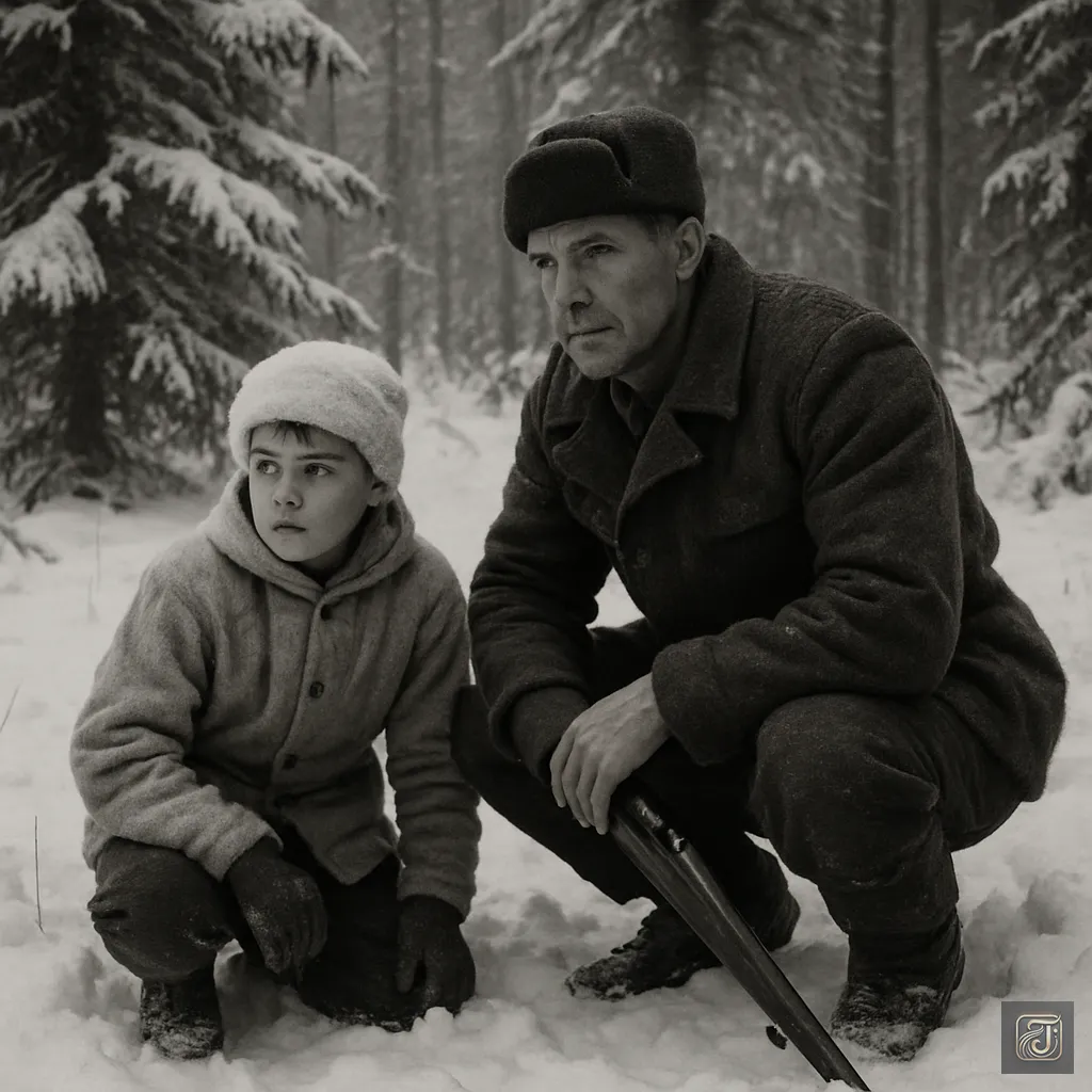 His father said as he knelt in the snow and scanned the surroundings.