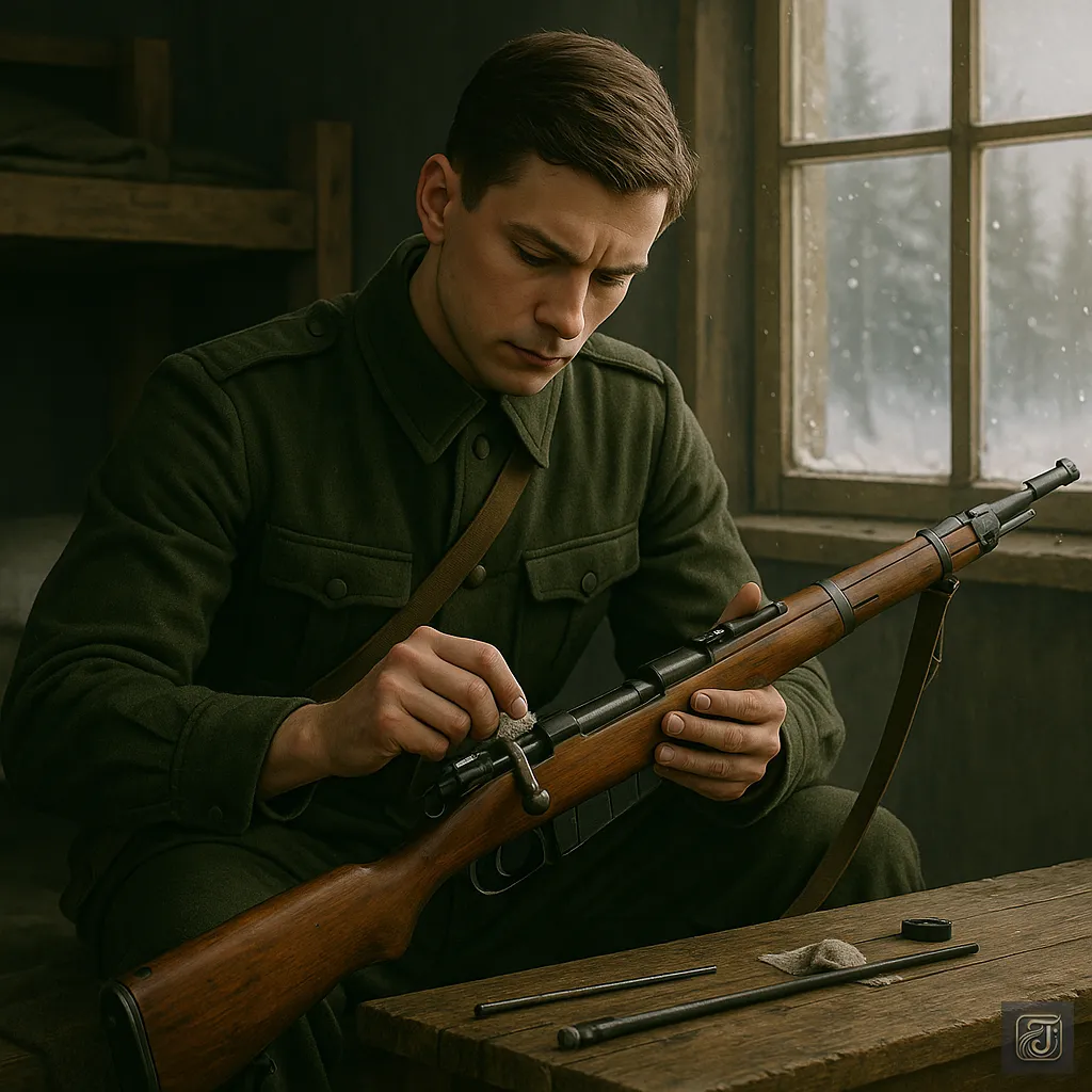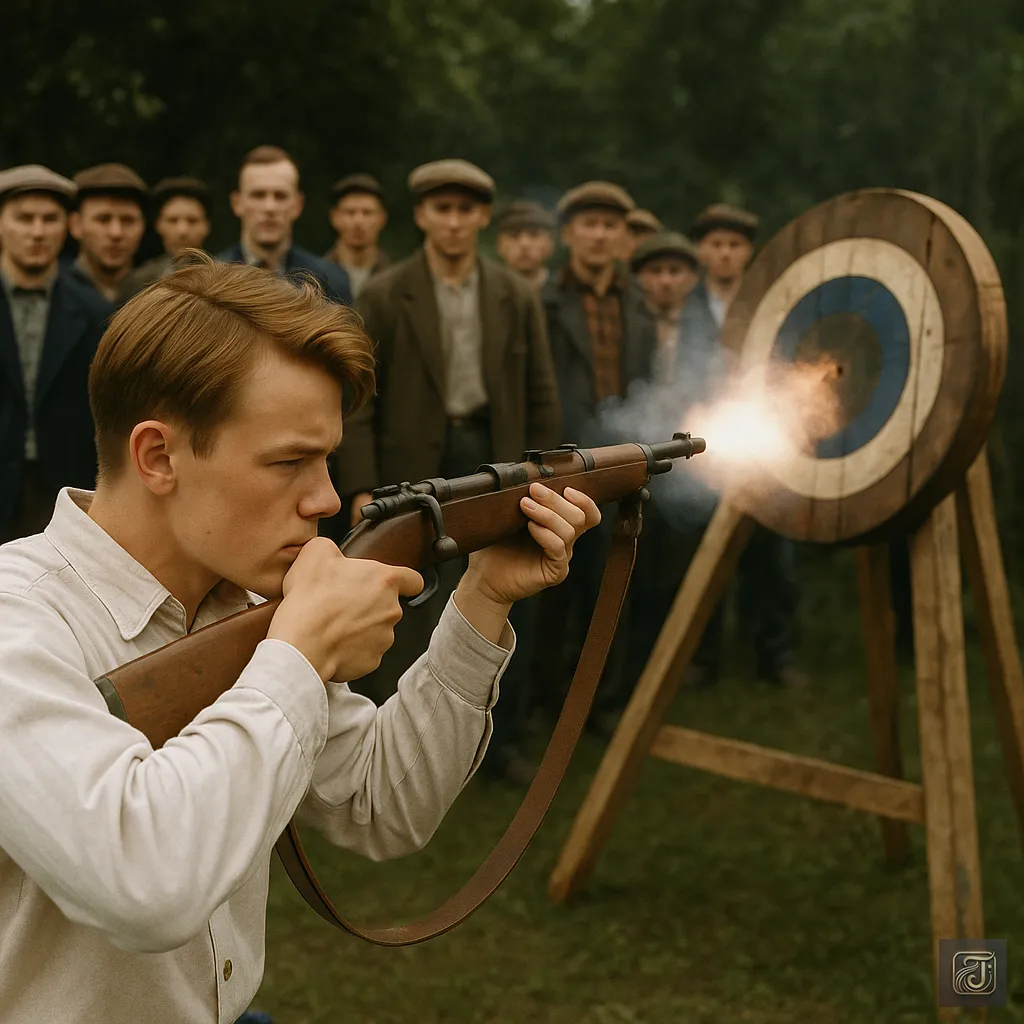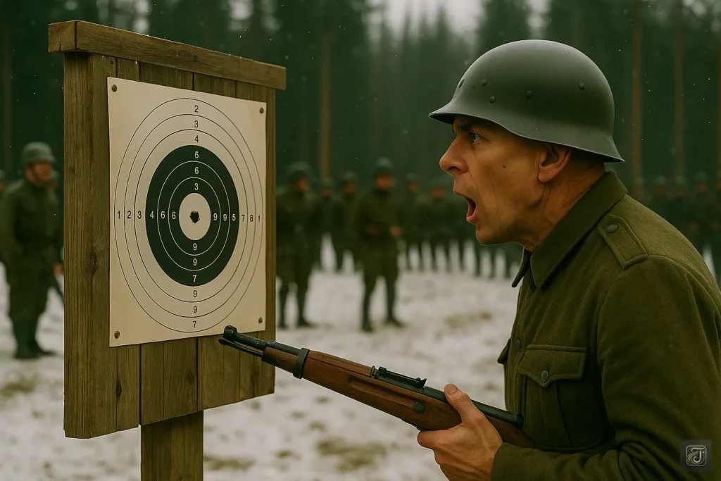 Instead of the standard-issue rifle, he raised his own—an old, scope-less rifle he had brought himself.