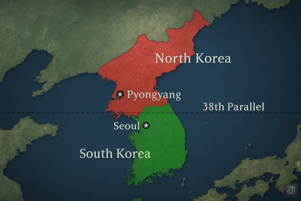 As a result, the peninsula was divided at the 38th parallel north, creating two separate governments — one communist in the North, and one democratic in the South.