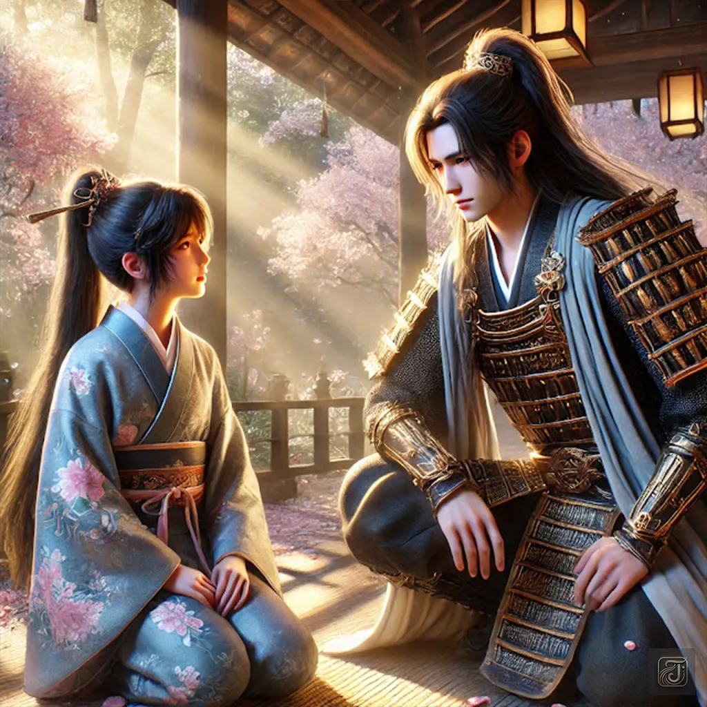 Yoshinaka smiled gently and shared his plan with Tomoe Gozen.