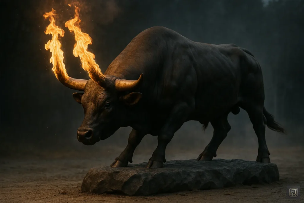 At Yoshinaka’s signal, the cows were set loose, running through the Taira’s camp, flames roaring from their horns.