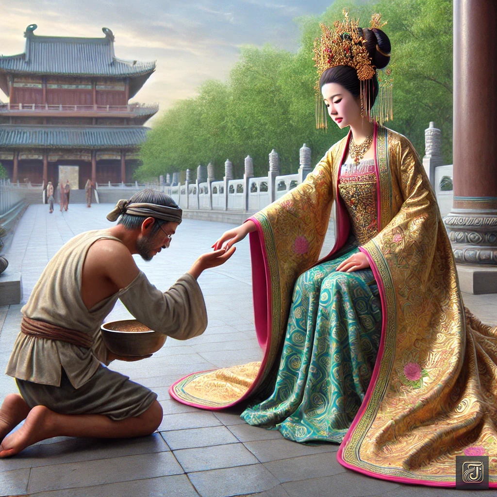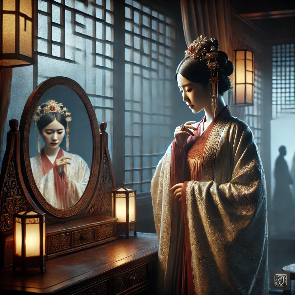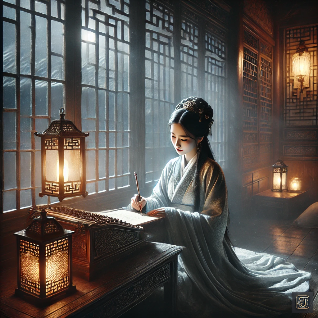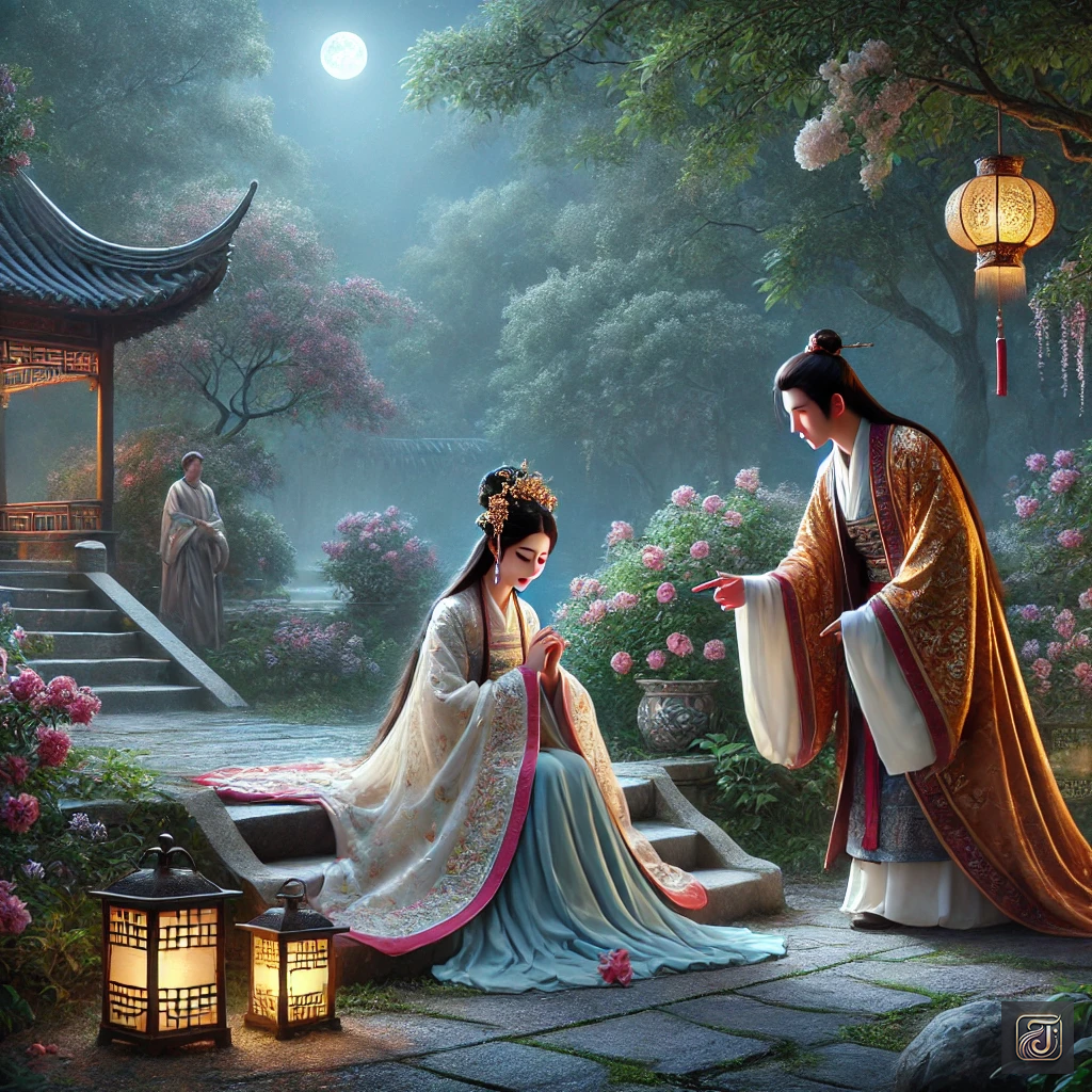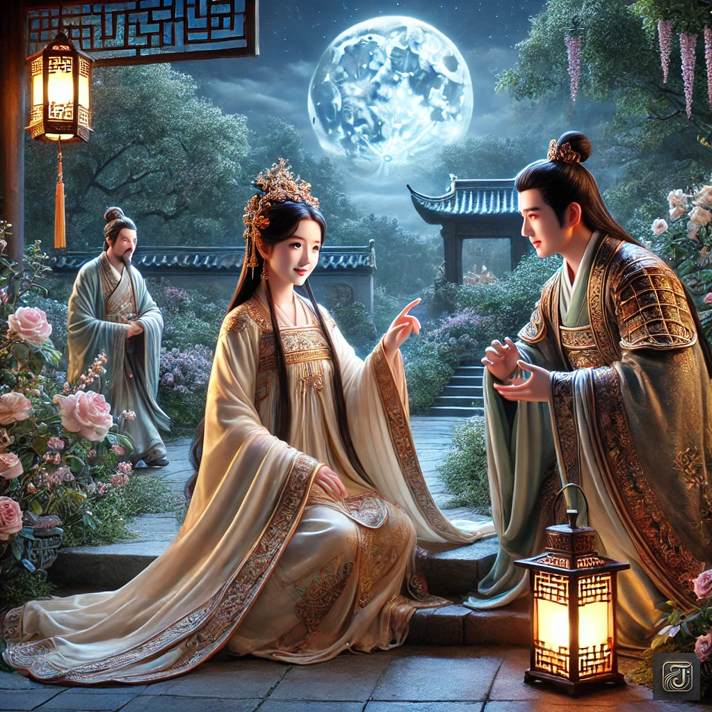 One night, as Emperor Taizong strolled through the imperial harem, he noticed Wu Meiniang in the garden, composing poetry.