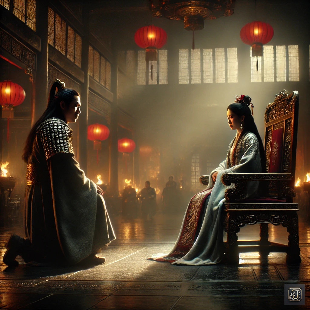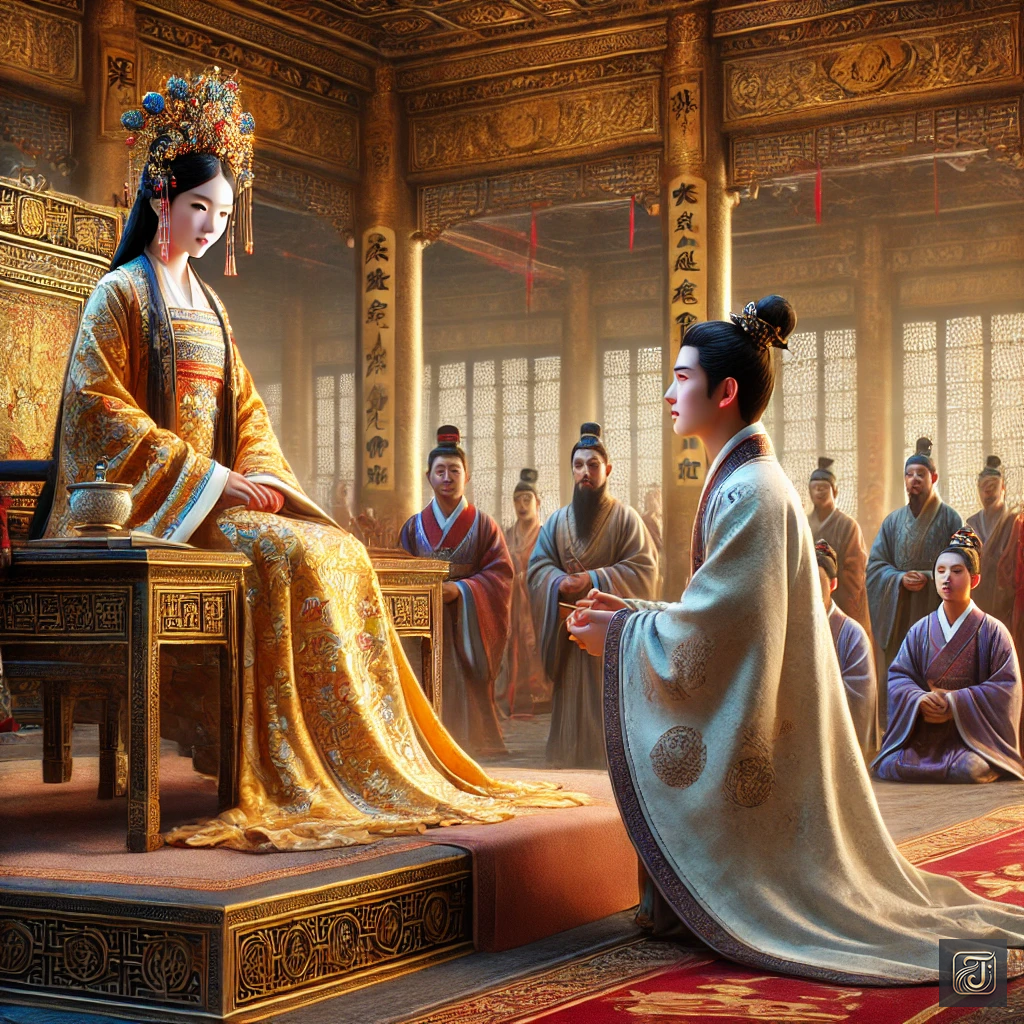 Wu Zetian sat deeply in her chair, her gaze fixed on Zhang Jianzhi’s resolute expression.