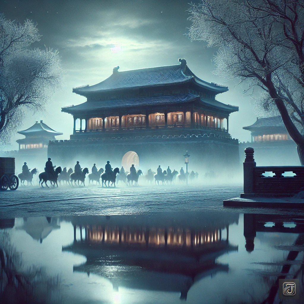 The moonlight bathed the land of Luoyang in a serene glow, wrapping everything in silence as the wind gently caressed the grass and trees.