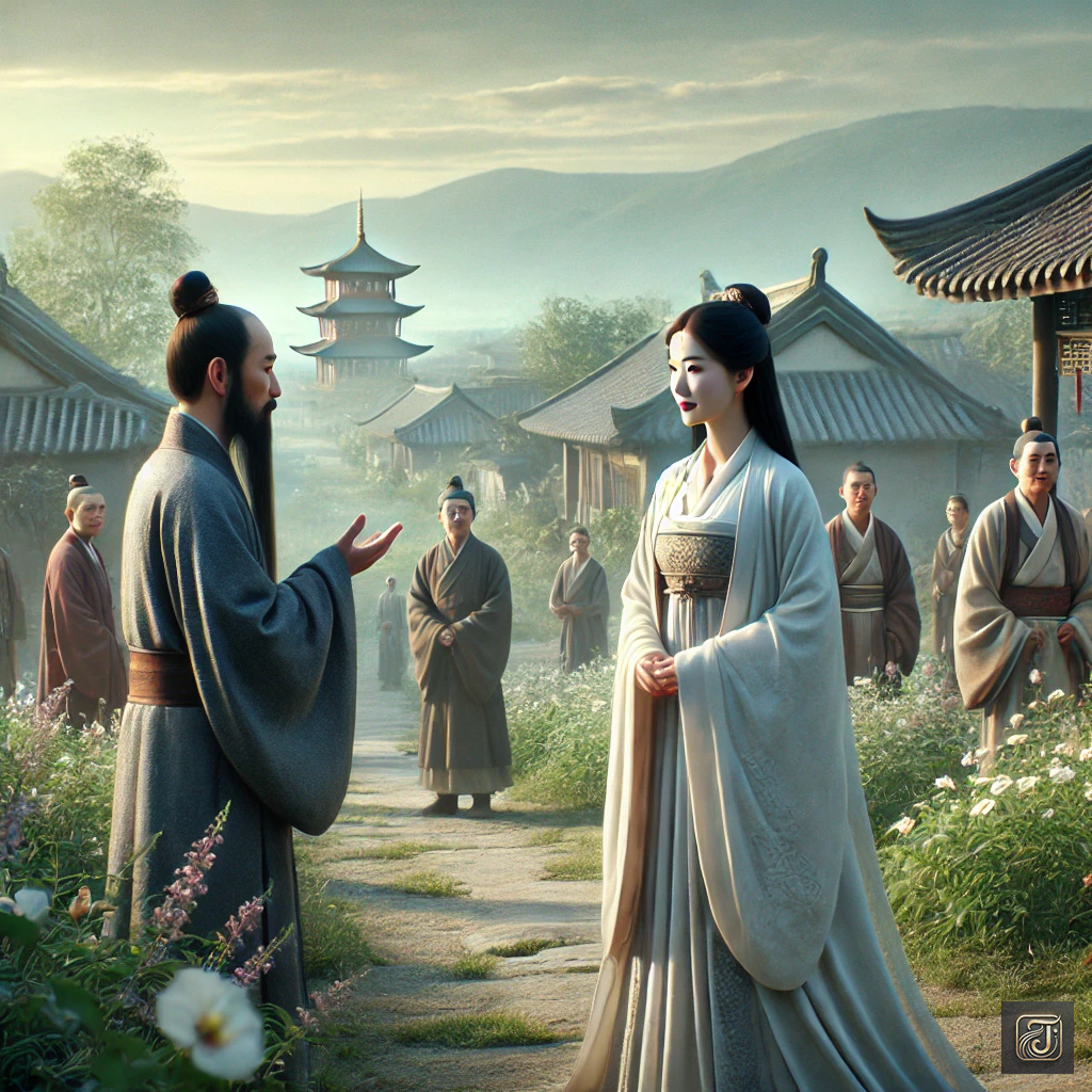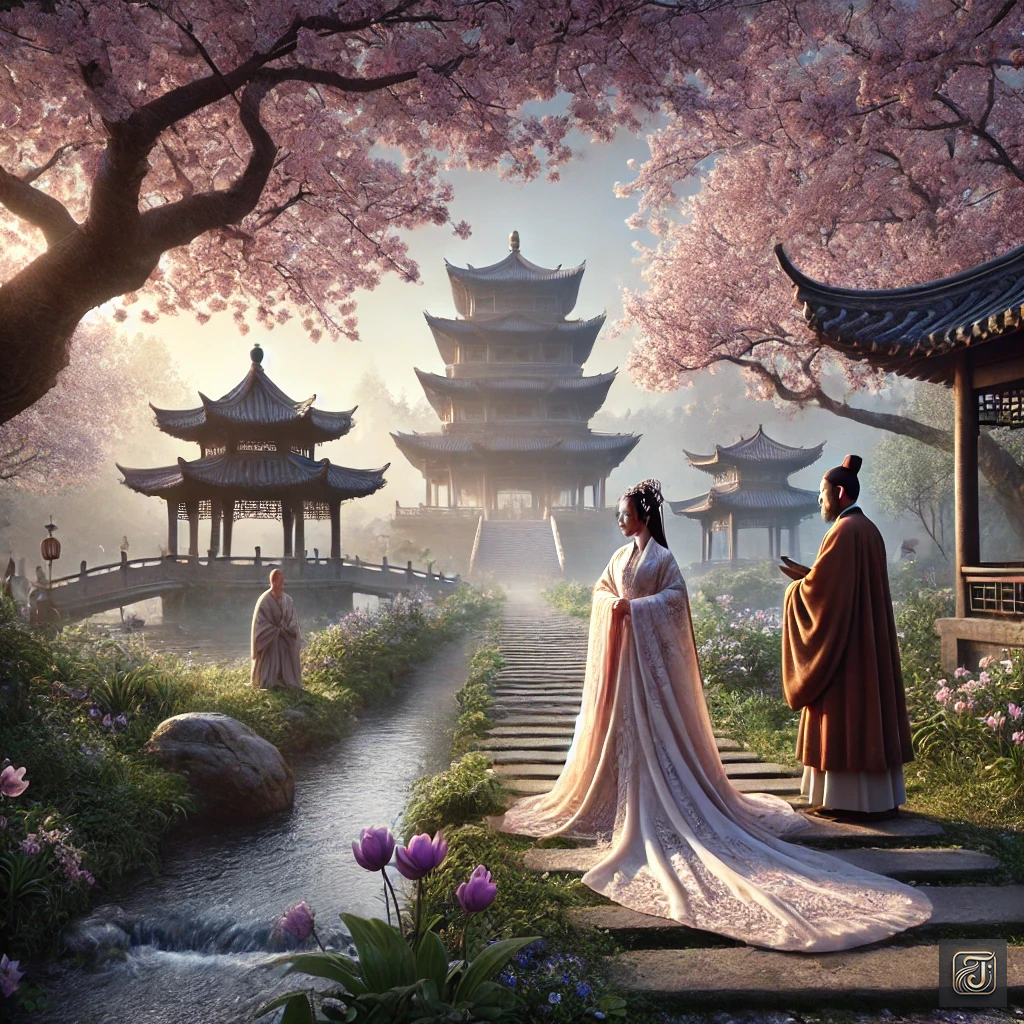 One day, she stepped into the garden and engaged in a conversation with a monk while gazing at a pagoda.