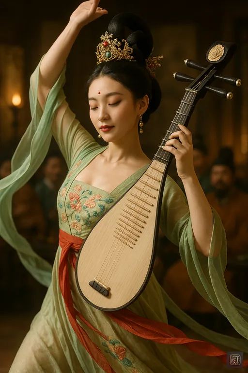 One spring day, during a family gathering, Yuhuan played the pipa and began to dance with graceful lightness.