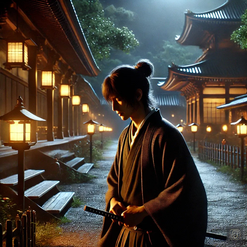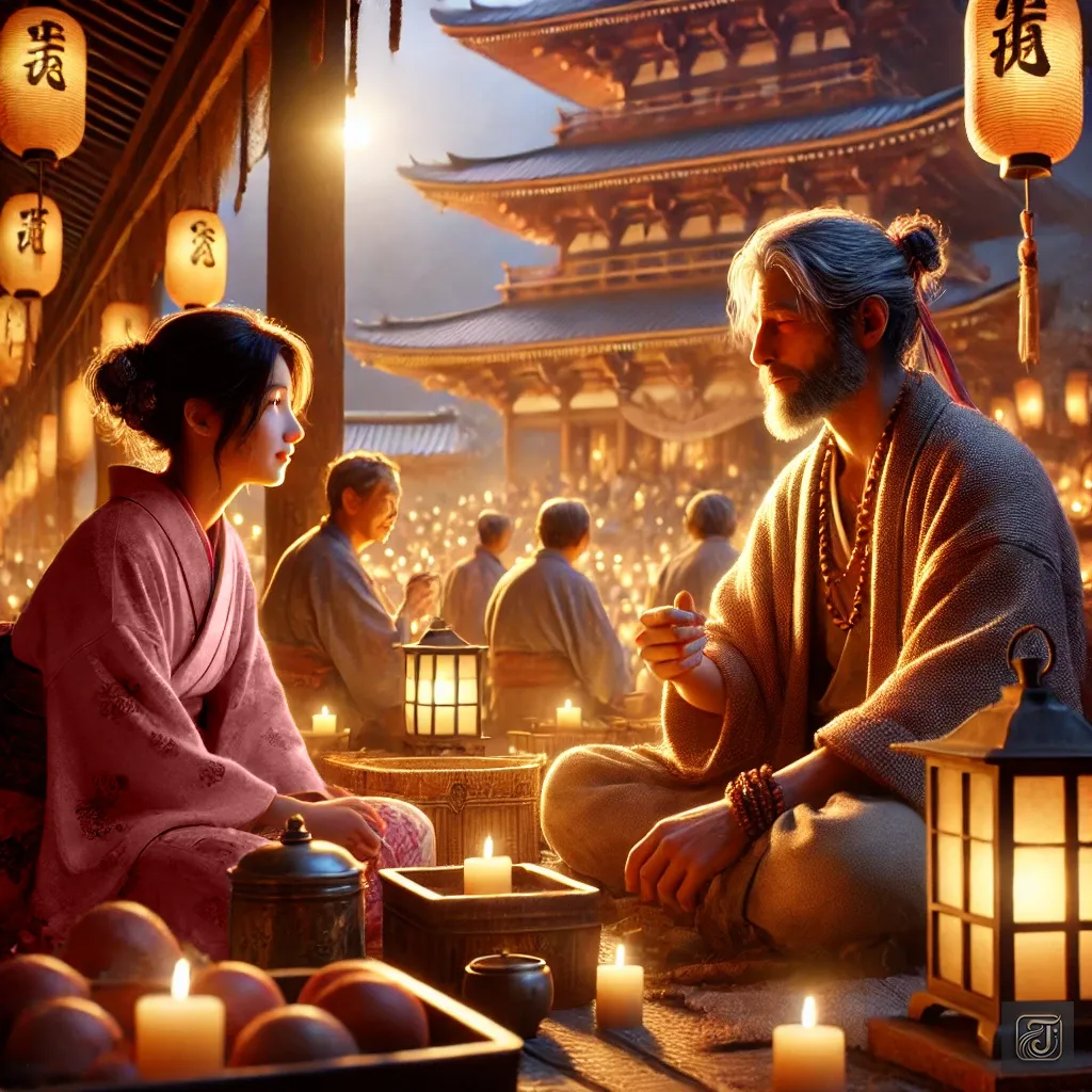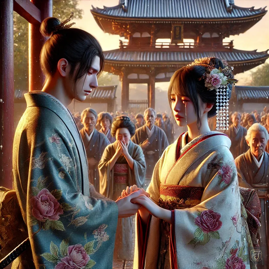 The Jizo statue quietly listened to their words, as if watching over a love that transcended time.