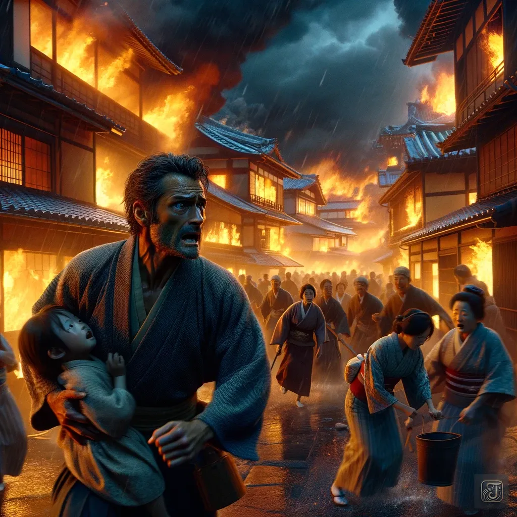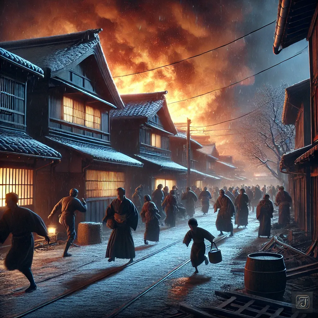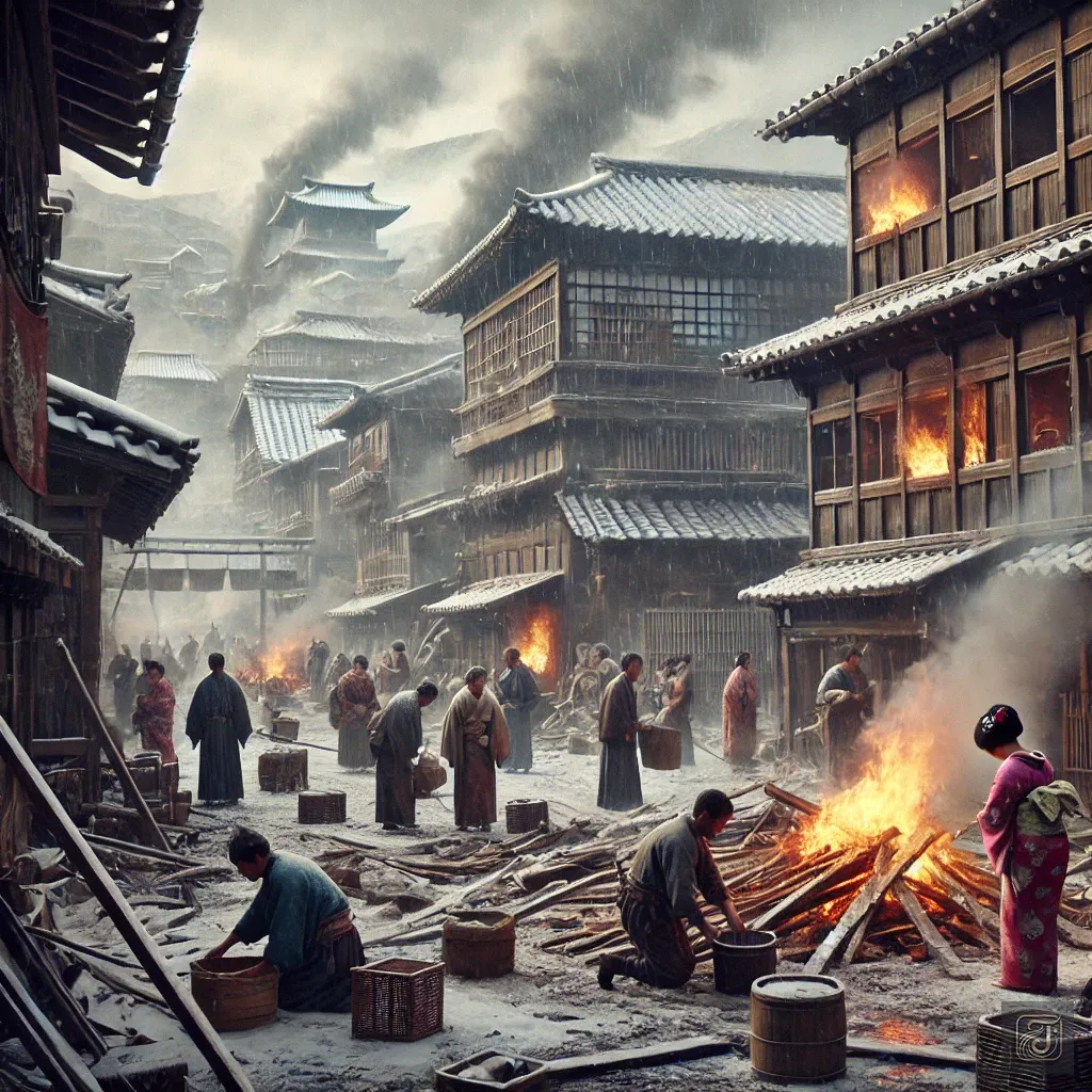 The city of Edo capital, with its densely packed wooden structures, faced a constant risk of fire, especially when the dry winter winds blew.