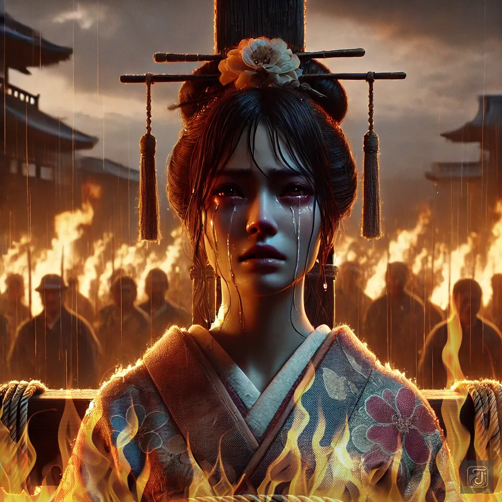 Looking up at the towering pillars of flames, tears welled up in Oshichi’s eyes and began to fall.
