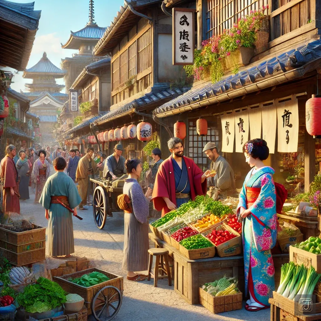 On the bustling main roads, merchants, craftsmen, and samurai dressed in vivid kimonos passed one another.