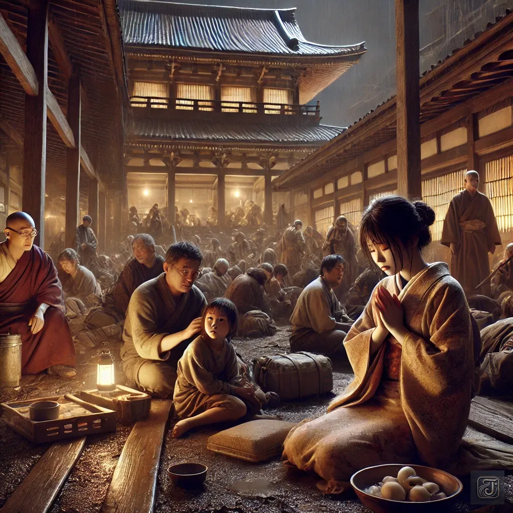 The temple was overflowing with disaster victims, but it provided a safe haven where they could preserve their lives.
