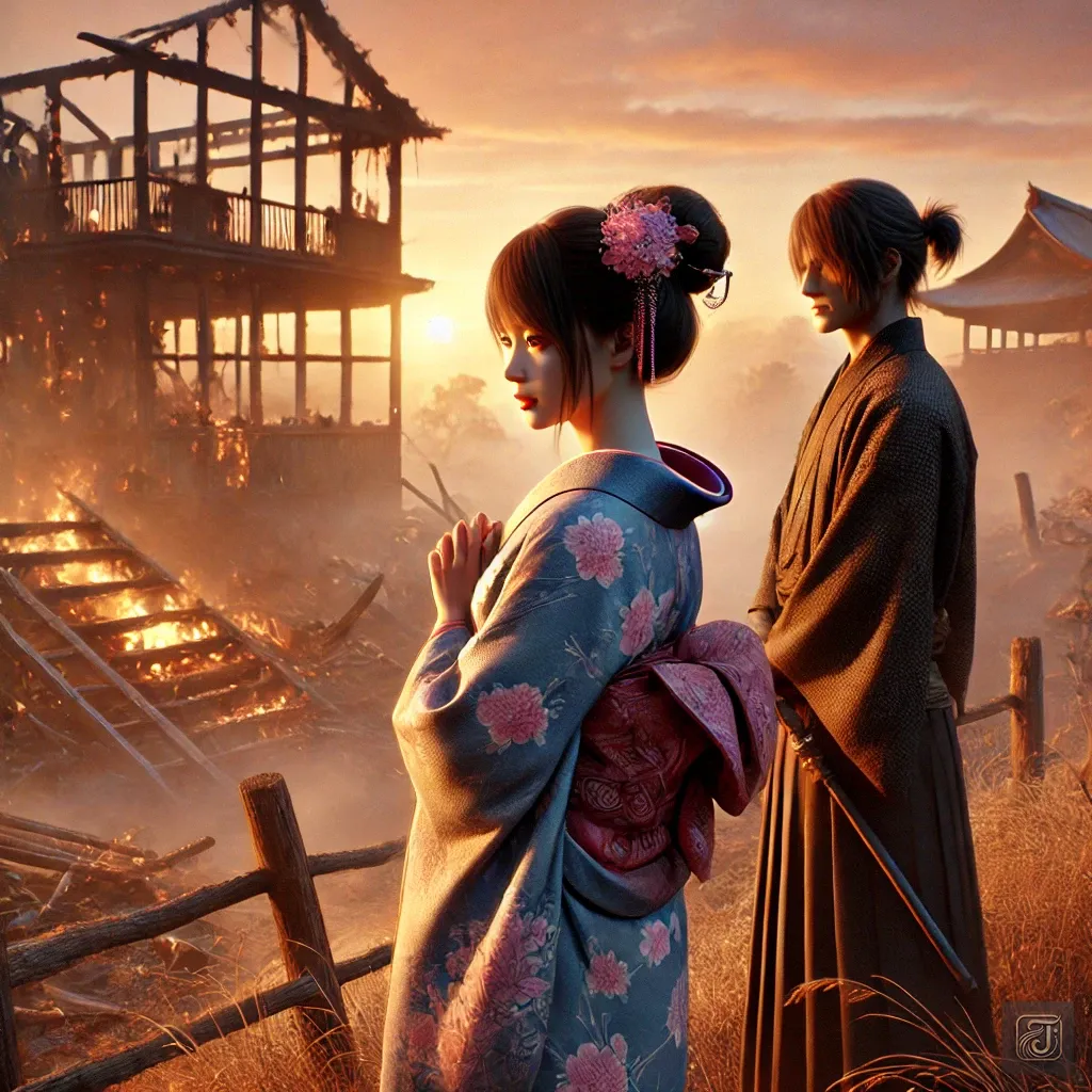 Oshichi turned to look back at her home and saw the house where she had grown up engulfed in flames.