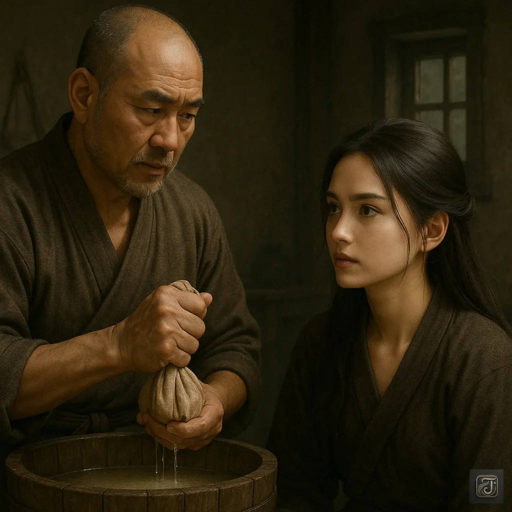 A man scarred by the harsh tides of the world, who hides his truths and lives quietly, making tofu with his daughter in peace.