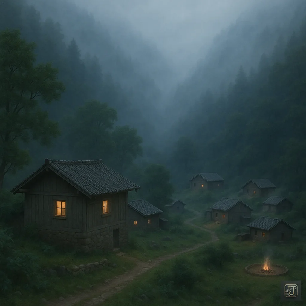 Shrouded in mist lies a quiet village, nestled deep in the forest.
