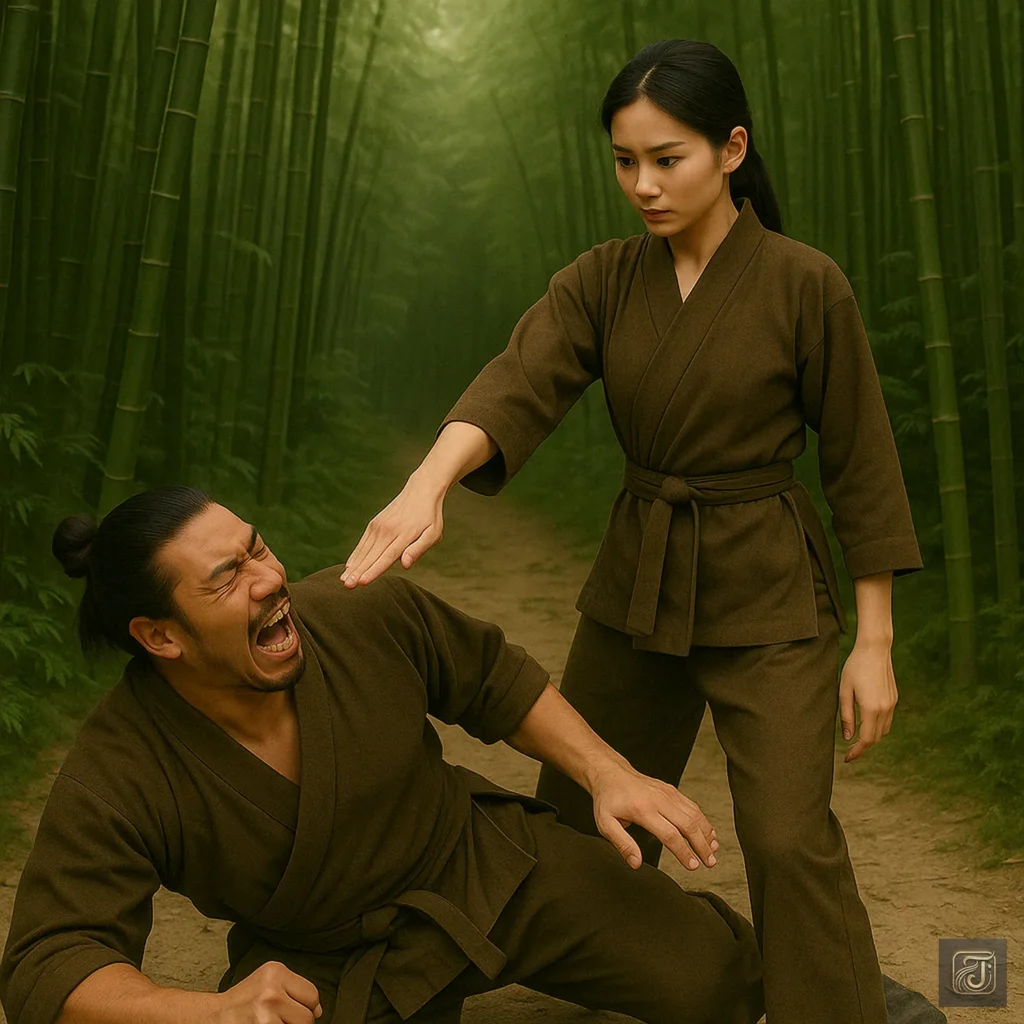 He challenged her again and again, but Wing Chun evaded every move and brought him to the ground with the barest motions.