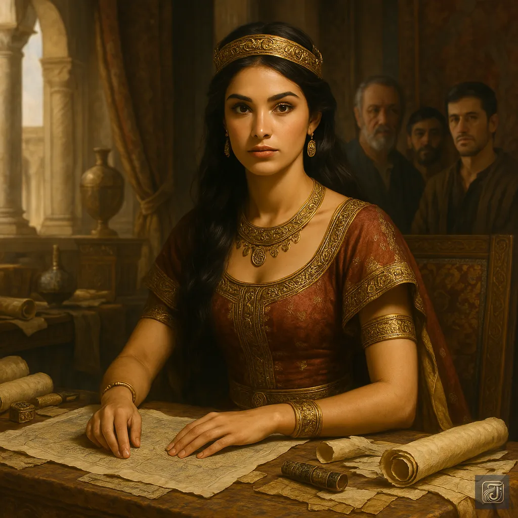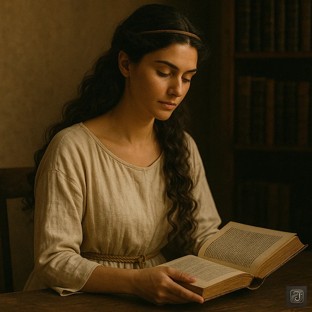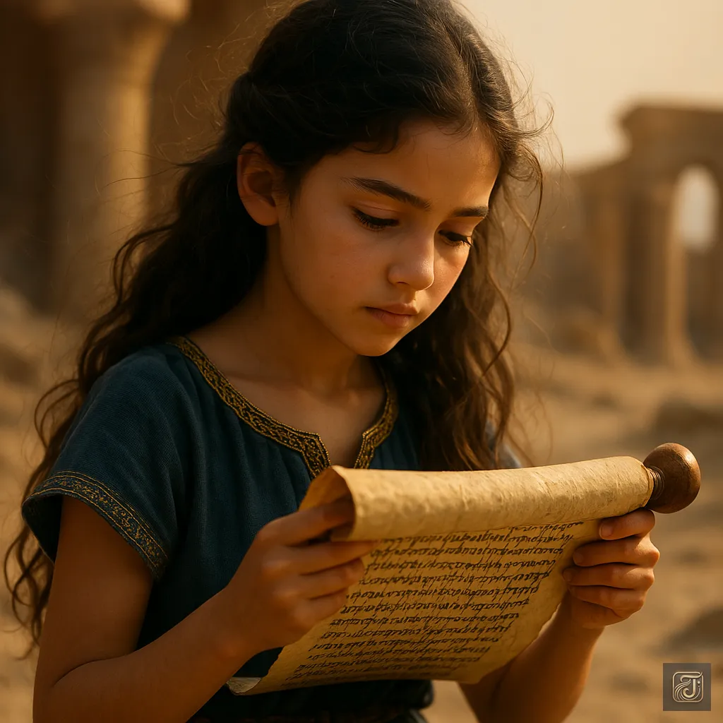 While other children played, she immersed herself in scrolls stirred by the desert winds—her eyes dancing over the ink as if chasing the secrets of the world.